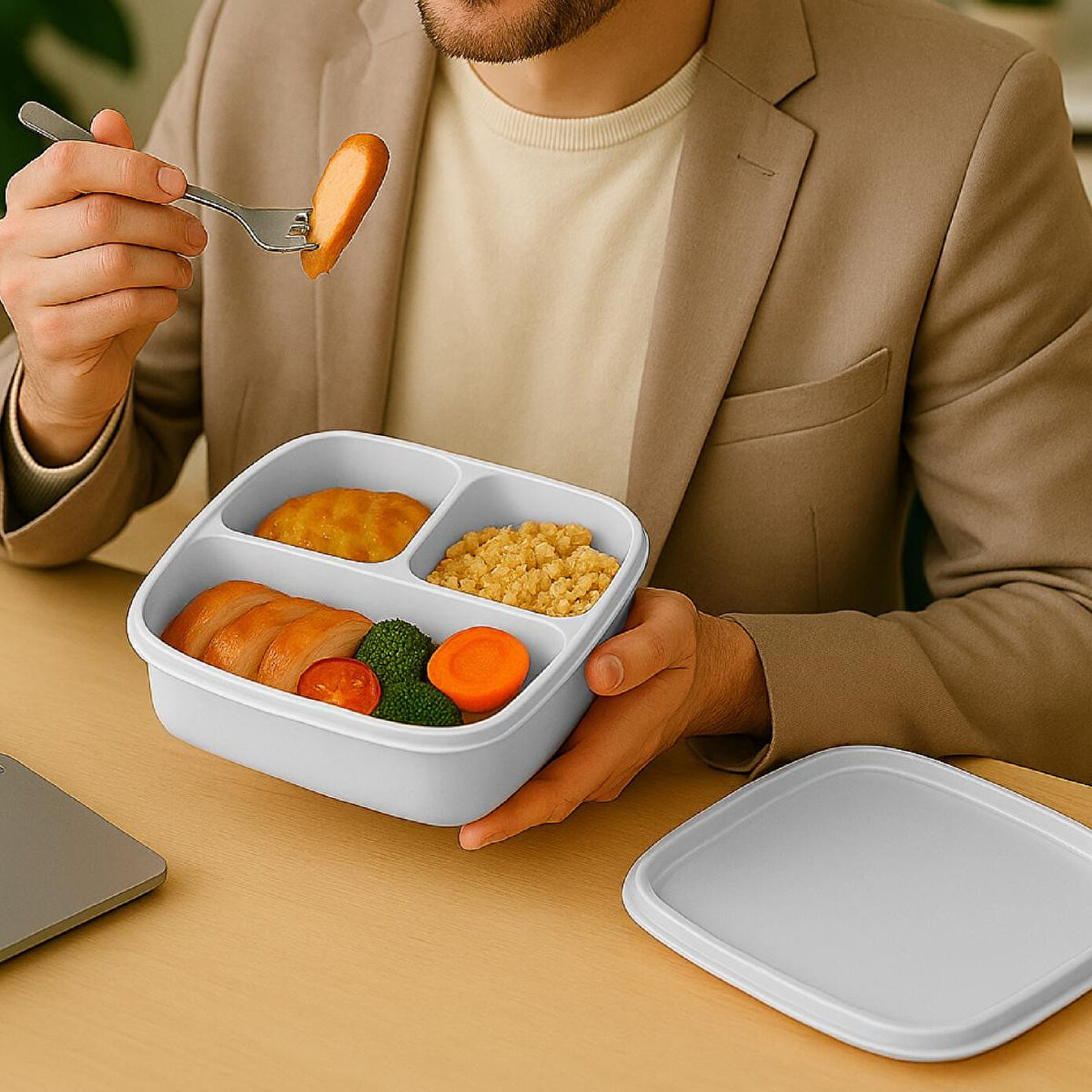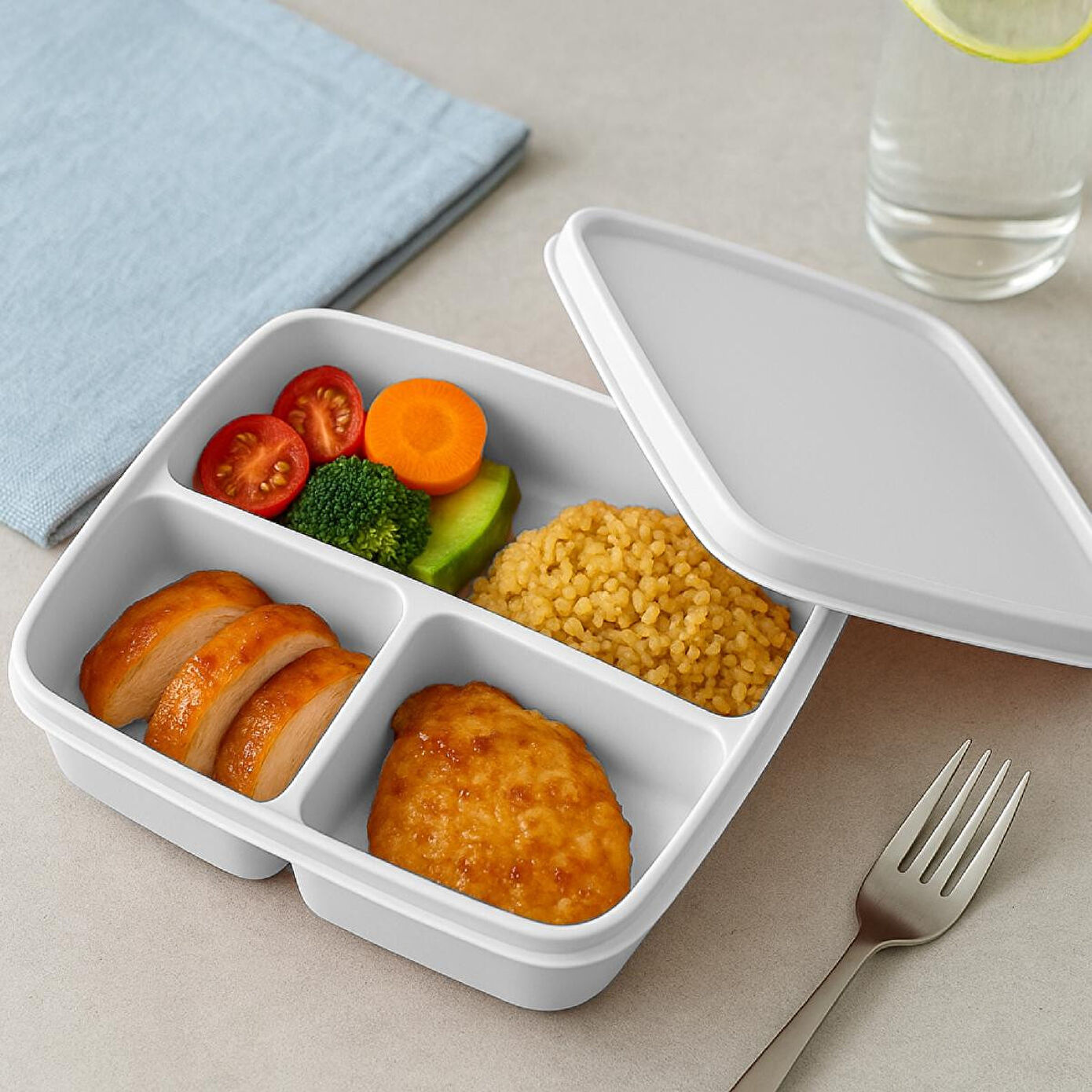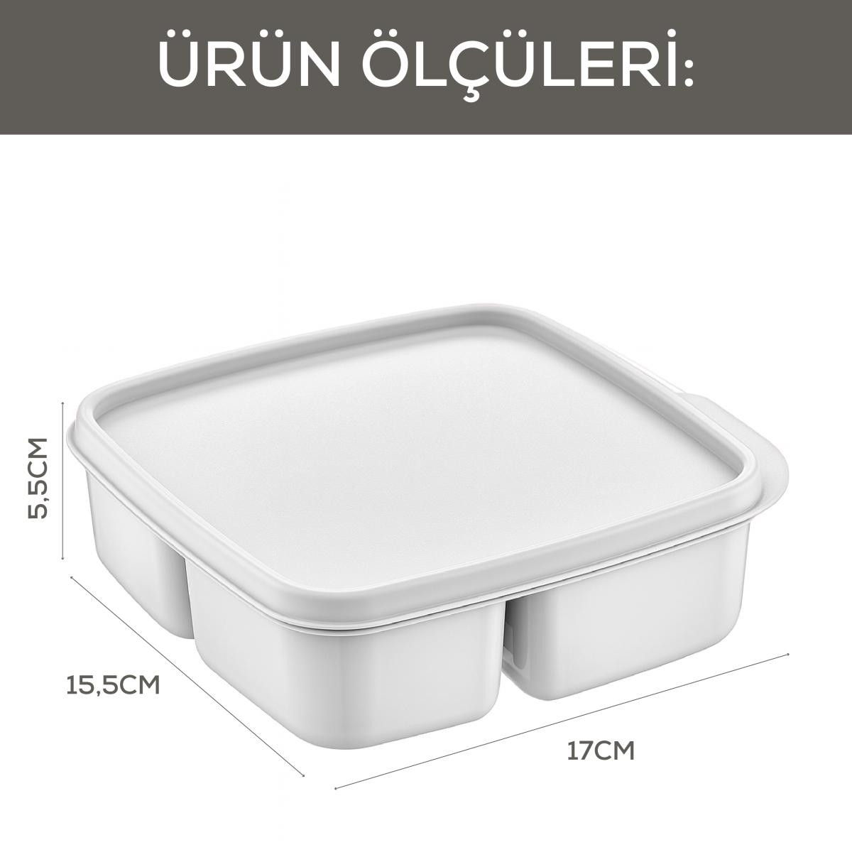 3 Bölmeli Kare Saklama Kabı – Pratik, Düzenli ve Çok Amaçlı Saklama Çözümü! Mutfakta düzenin ve hijyenin en büyük yardımcısı olan 3 Bölmeli Kare Saklama Kabı, gıdalarınızı hem taze tutar hem de karışmasını önleyerek kullanım kolaylığı sağlar. Kahvaltılıklardan atıştırmalıklara, öğle yemeklerinden soslara kadar her şeyi tek kapta düzenli şekilde saklamanıza olanak tanır. Ürün Özellikleri: 3 Ayrı Bölmeli Tasarım: Her bölme ayrı bir gıdaya özel olarak tasarlanmıştır. Zeytin, peynir, reçel veya kuruyemiş gibi ürünleri karışmadan saklayabilirsiniz. Kare ve Kompakt Yapı: Dolaplarda ve buzdolabında minimum yer kaplar, maksimum alan kullanımı sağlar. Yüksek Kaliteli Malzeme: BPA içermeyen, dayanıklı ve gıda dostu plastikten üretilmiştir. Gönül rahatlığıyla kullanabilirsiniz. Sızdırmaz Kapak: Özel tasarlanmış kapağı sayesinde sıvı veya kokulu yiyeceklerin dışarı taşmasını engeller. Çok Yönlü Kullanım: Kahvaltılıklar, öğle yemeği hazırlıkları, piknik için atıştırmalıklar veya çocuklarınızın ara öğünleri için ideal. Kolay Temizlik: Bulaşık makinesinde yıkanabilir yapısıyla temizlik zahmetsiz hale gelir. Ürün Ölçüleri: 17x15,5x5,5 cm