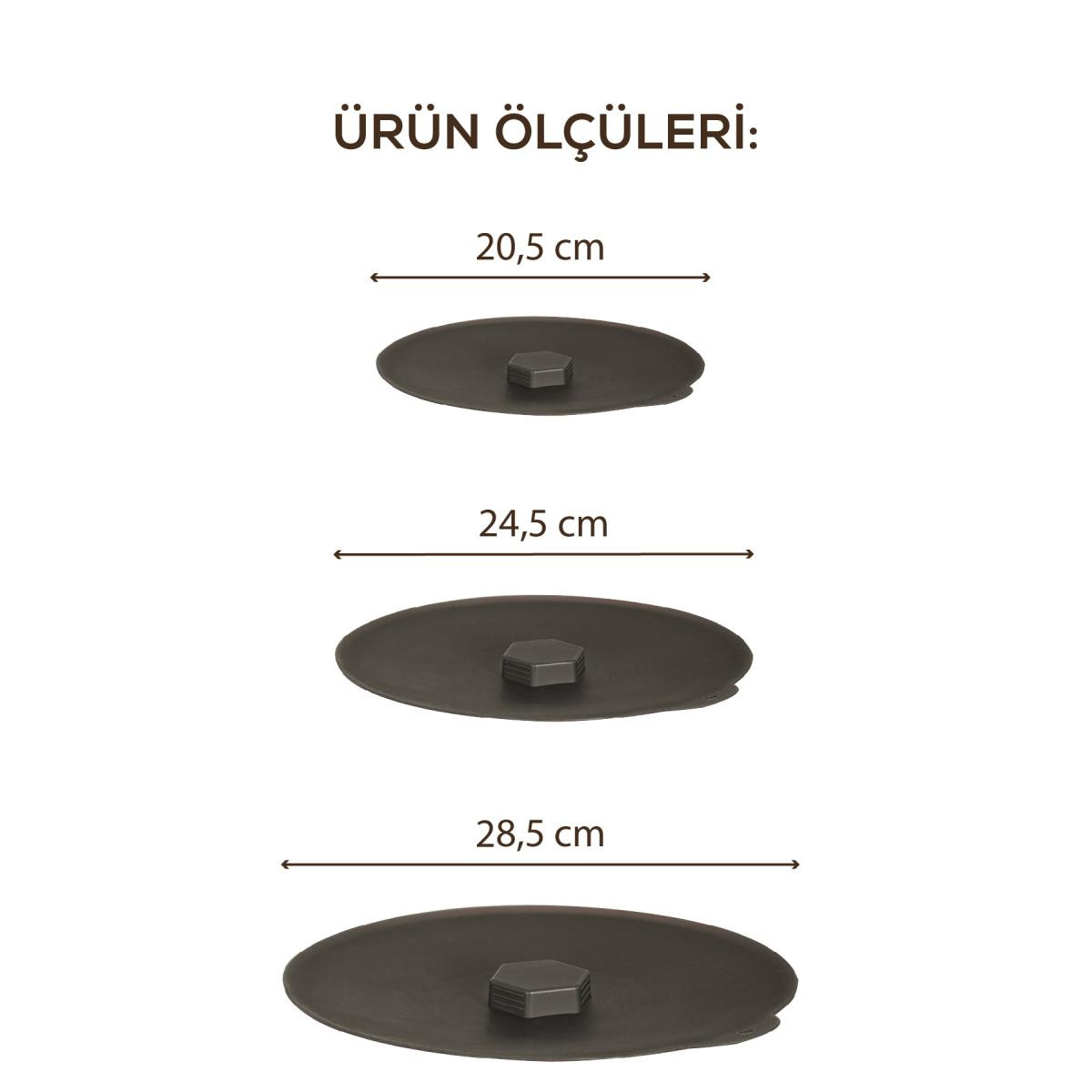 Vienev 3'lü Silikon Tencere Tava Kapağı Isı Koruyucu Antrasit Renk