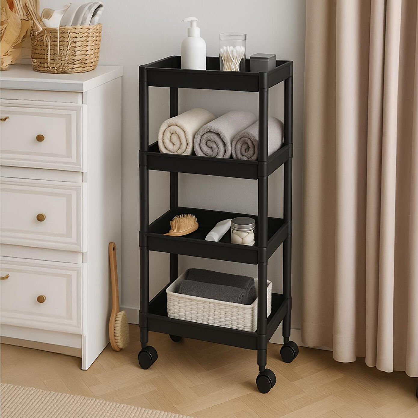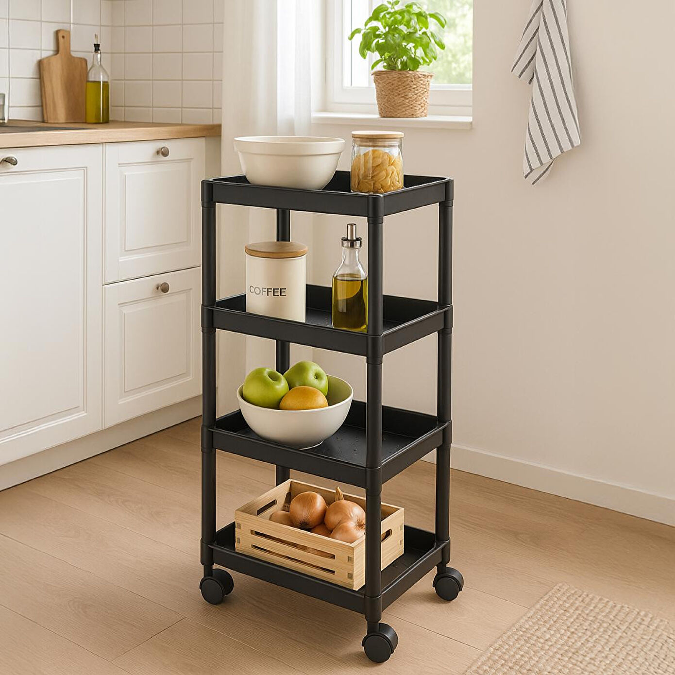 Vienev 4 Katlı Tekerlekli Çok Amaçlı Mutfak Ve Banyo Rafı Siyah