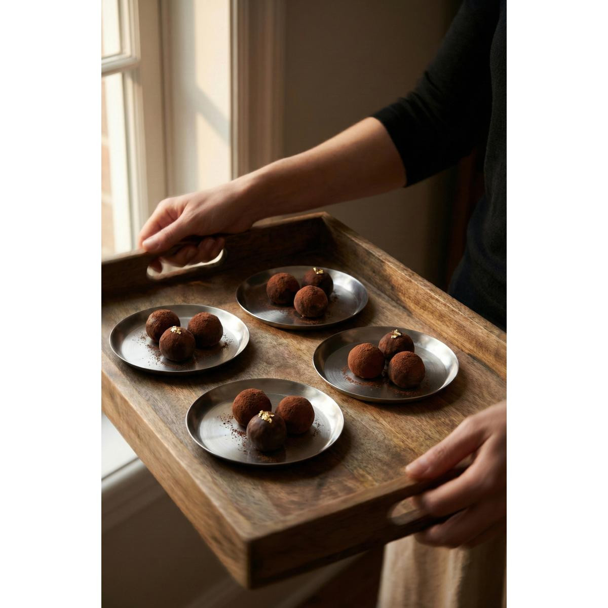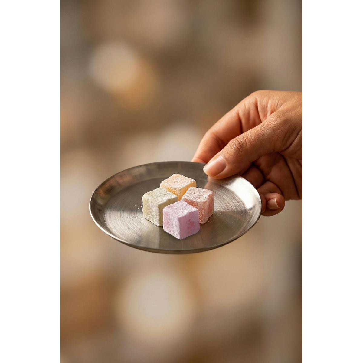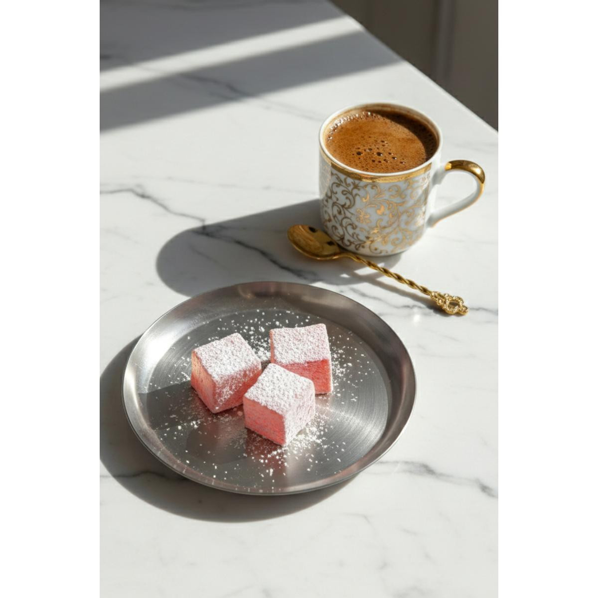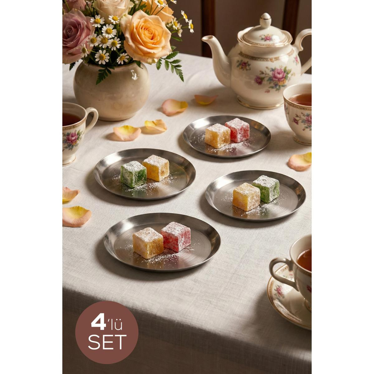 Sofralarınıza modern ve endüstriyel bir şıklık katın! Minimalist tasarımı ve dayanıklı yapısı ile 4'lü Metal Pasta ve Sunum Tabağı Seti, mutfağınızın vazgeçilmezi olmaya aday.; Paslanmaz çelikten üretilen bu 12 cm'lik tabaklar, sadece pasta servisinde değil; kahve yanı ikramlarınızda, çerez sunumlarında veya kahvaltı sofralarınızda reçellik/zeytinlik olarak kullanabileceğiniz çok yönlü bir üründür.; Kırılmaya karşı dayanıklı yapısı sayesinde hem günlük kullanıma hem de piknik ve kamp organizasyonlarınıza uygundur.; Öne Çıkan Özellikler: Çok Amaçlı Kullanım: Küçük porsiyon tatlılar, makaronlar, kurabiyeler, çerezler veya kahve fincanı altlığı olarak kullanım için ideal boyuttadır.; Paslanmaz Çelik Kalitesi: Gıda ile temasa uygun, yüksek kaliteli metal malzemeden üretilmiştir.; Paslanmaya ve kararmaya karşı dirençlidir.; Modern Tasarım: Parlak metalik yüzeyi ve sade formu ile her türlü sofra dekorasyonuna (modern, rustik, endüstriyel) uyum sağlar.; Kolay Temizlik: Pürüzsüz yüzeyi sayesinde kolayca temizlenir, leke tutmaz.; Yer Kaplamaz: İç içe geçen yapısı sayesinde dolaplarınızda minimum yer kaplar.; Kullanım Alanları: Pasta ve tatlı servisi Kahve yanı çikolata/lokum sunumu Çerezlik ve kuruyemiş tabağı Meyve sunumu Dekoratif amaçlı (Mum altlığı veya takı tabağı olarak) Teknik Özellikler: Materyal: Paslanmaz Çelik (Metal) Çap: 12 cm Paket İçeriği: 4 Adet Tabak Form: Yuvarlak