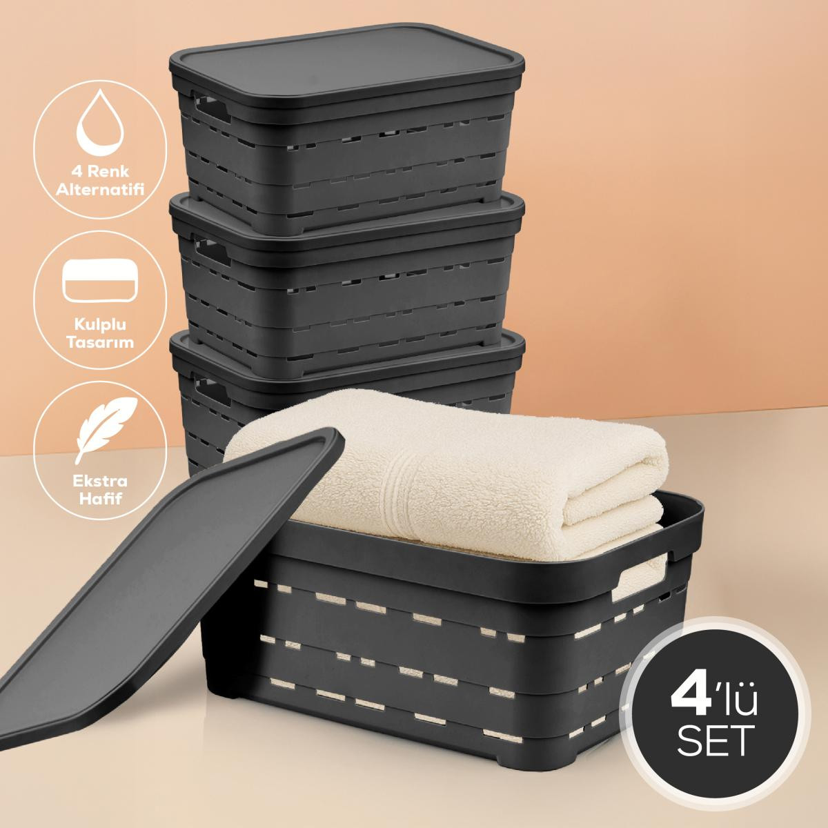 Vienev 4'lü Kapaklı 10,8 Litre Delikli Saklama Kutusu Antrasit