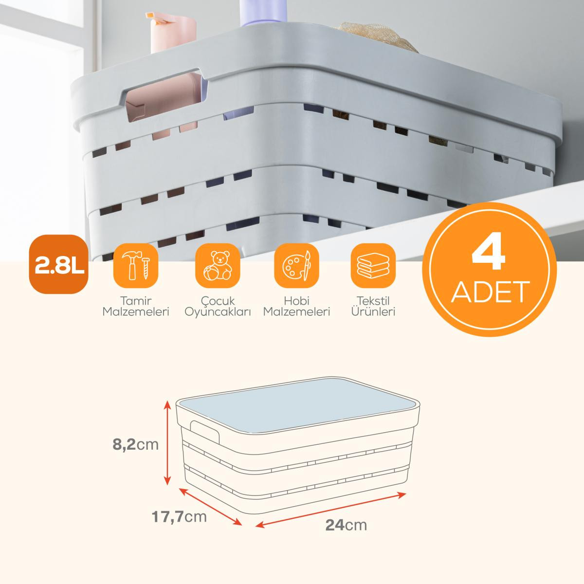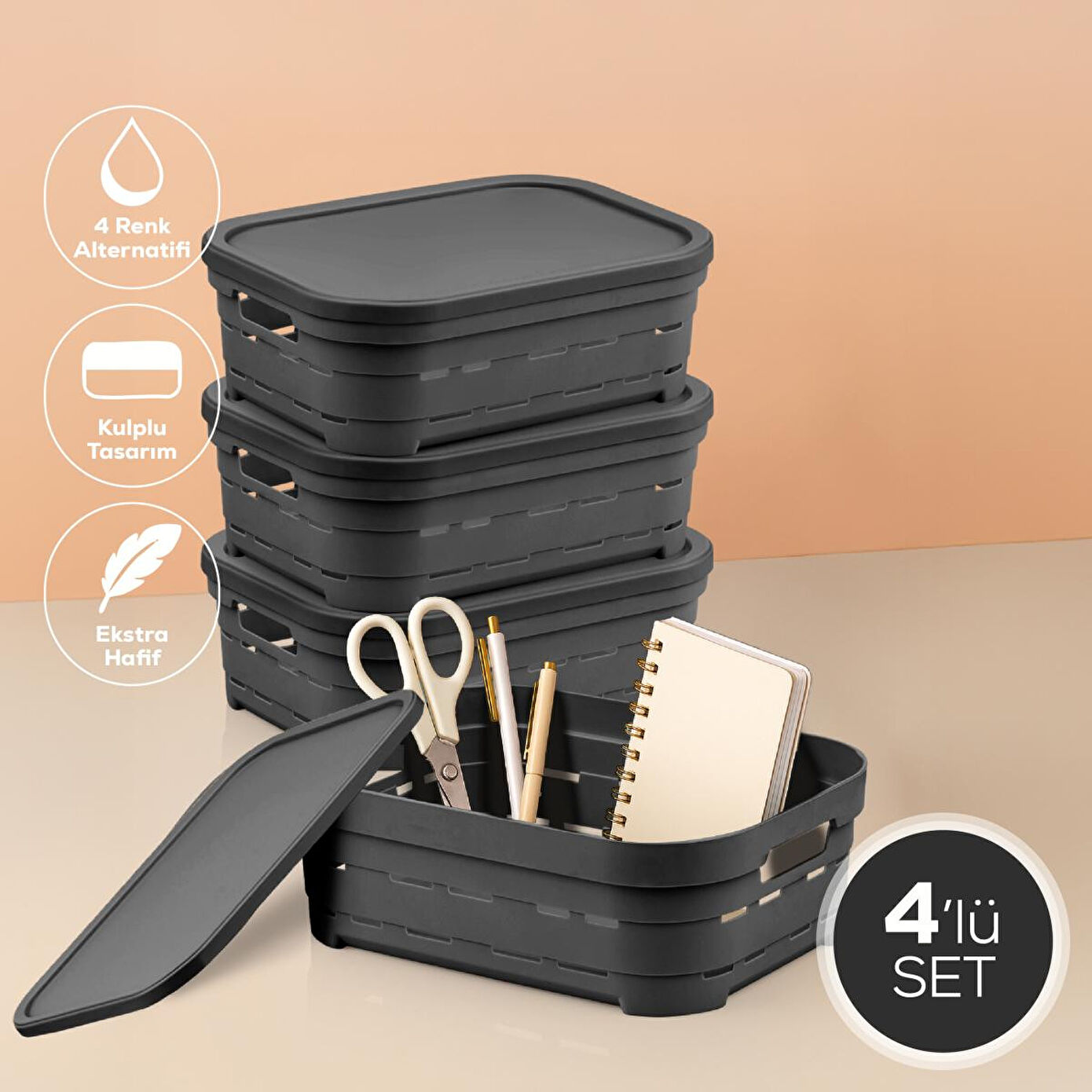 Vienev 4'lü Kapaklı 2,8 Litre Delikli Saklama Kutusu Antrasit