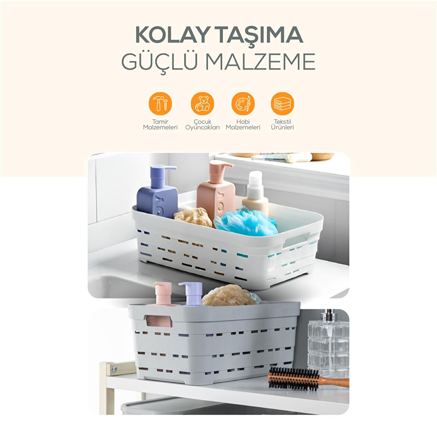 Kompakt ve Fonksiyonel: Hem mutfak dolaplarında hem de banyo, kiler ve çocuk odası gibi alanlarda kullanım için idealdir. Gıdadan kozmetiğe, küçük oyuncaklardan temizlik malzemelerine kadar pek çok ürünü düzenli bir şekilde saklamanıza yardımcı olur. Dayanıklı ve Sağlam Yapı: Yüksek kaliteli, BPA içermeyen plastikten üretilmiştir. Sağlam yapısı sayesinde uzun süreli kullanım sunar. İstiflenebilir Tasarım: Üst üste konulabilir yapısı sayesinde yerden tasarruf sağlar. Dolap içlerini daha verimli kullanmanıza olanak tanır. BPA içermez: Gıda ile temasa uygundur. Taşıma Kolaylığı: Kutunun her iki yanında yer alan ergonomik tutma yerleri ile dolu haldeyken bile rahatça taşınabilir. Ürün Ölçüleri: 17,7x24x8,2 cm Kapasite: 2,8 Litre