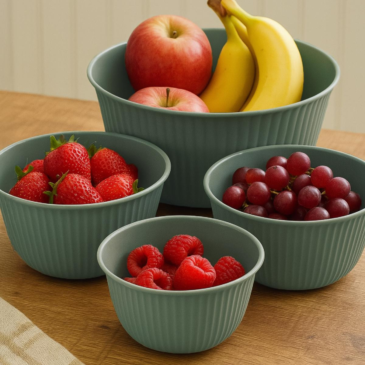 Vienev 4'lü Mega Boy Plastik Karıştırma Ve Saklama Kase Seti | 1l, 2l, 3l, 5l Yeşil
