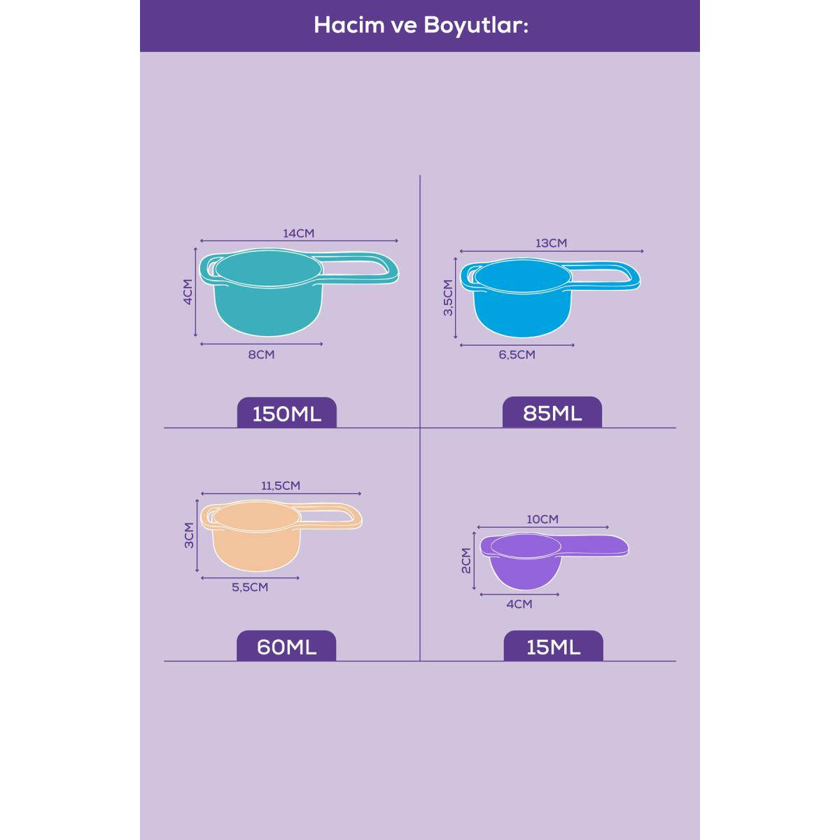 Vienev 4'lü Renkli Ölçü Kaşığı Seti Çok Renkli – (15-60-85-150 Ml) | Mutfak Ölçü Seti