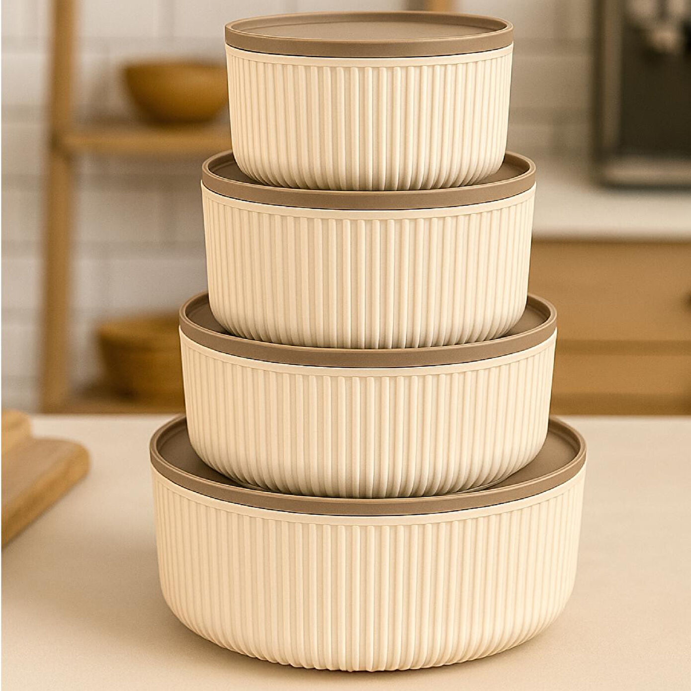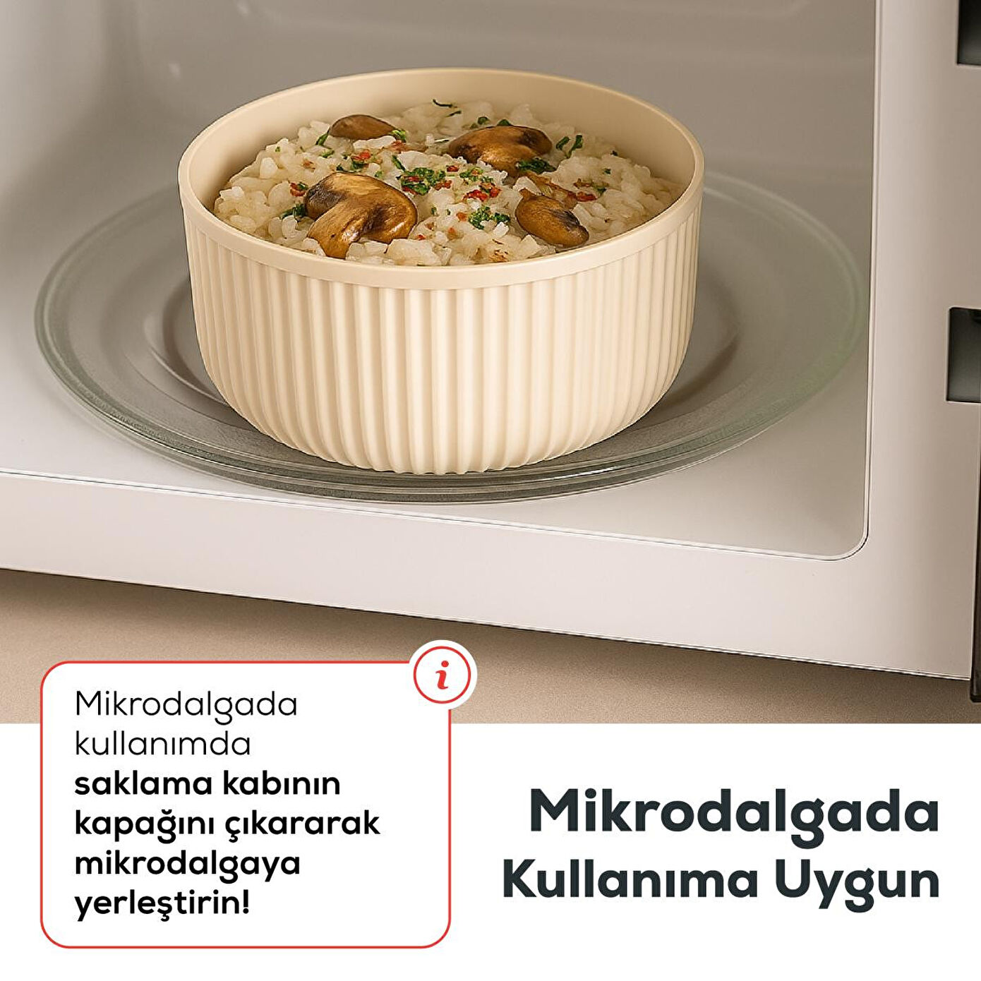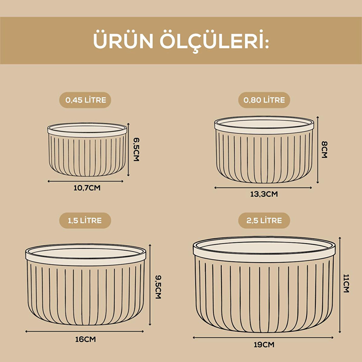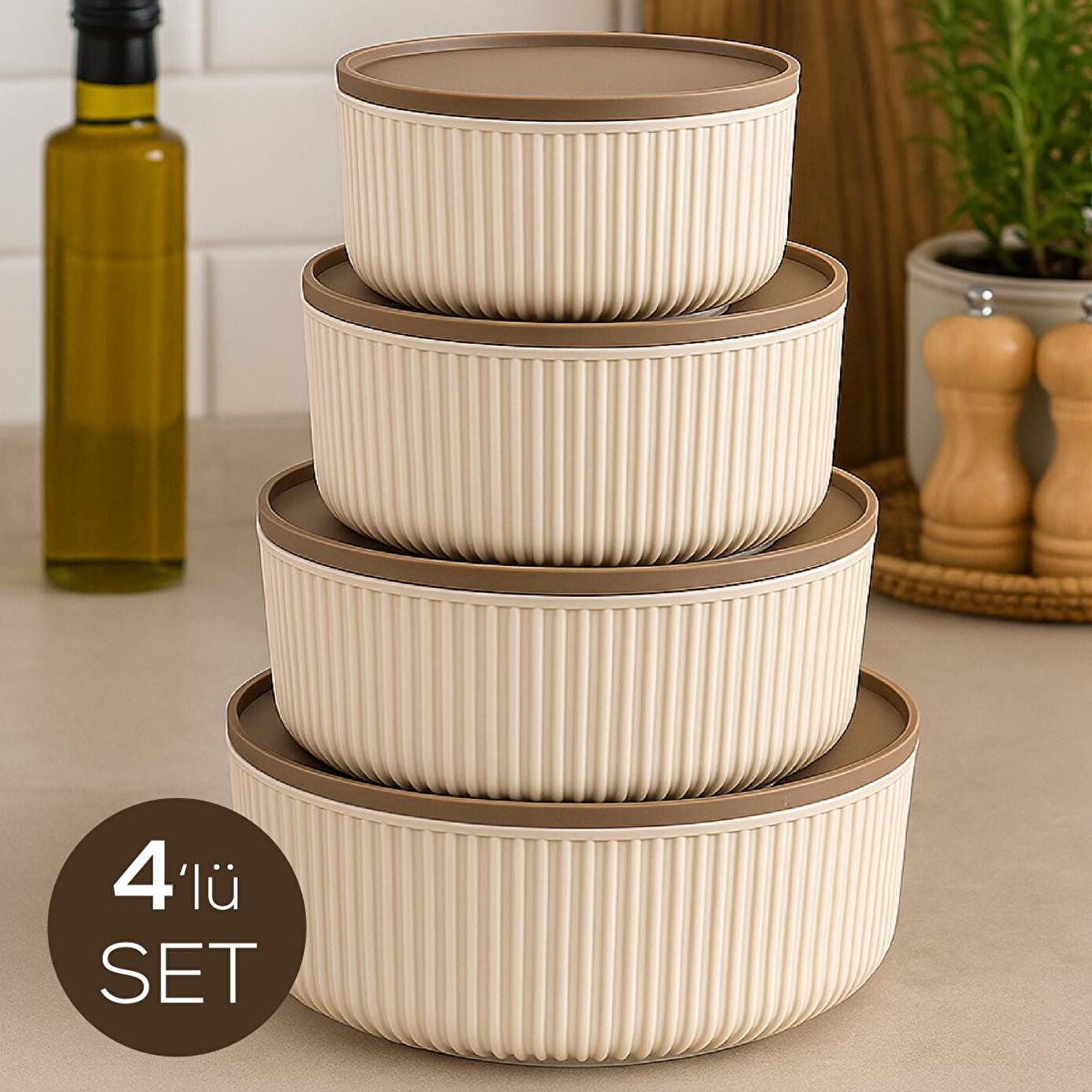 Vienev 4'lü Yuvarlak Saklama Kabı Seti Bej | 2.5l 1.5l 0.80l 0.45l | Mikrodalga Ve Dondurucu Uyumlu