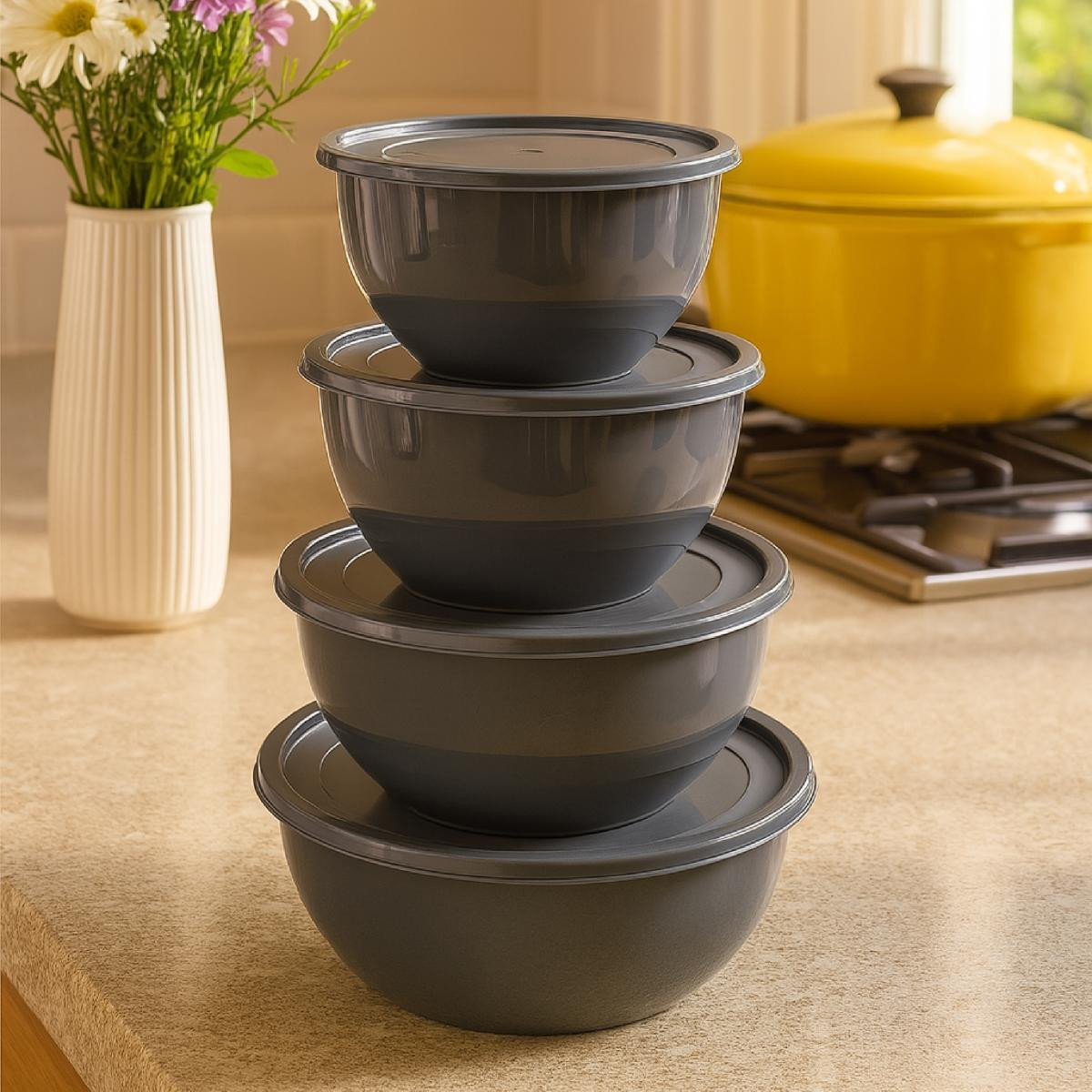 Vienev 4’lü Yuvarlak Saklama Kabı Seti ( 1l - 1,5l - 2,3l - 3,3l ) Antrasit