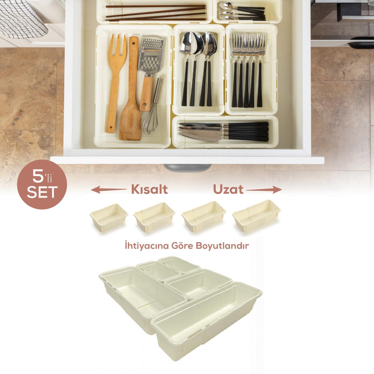 Vienev 5'li Set Ayarlanabilir Çekmece Içi Düzenleyici Kutu – Uzayıp Kısalabilen Organizer Seti (2a2b1c)