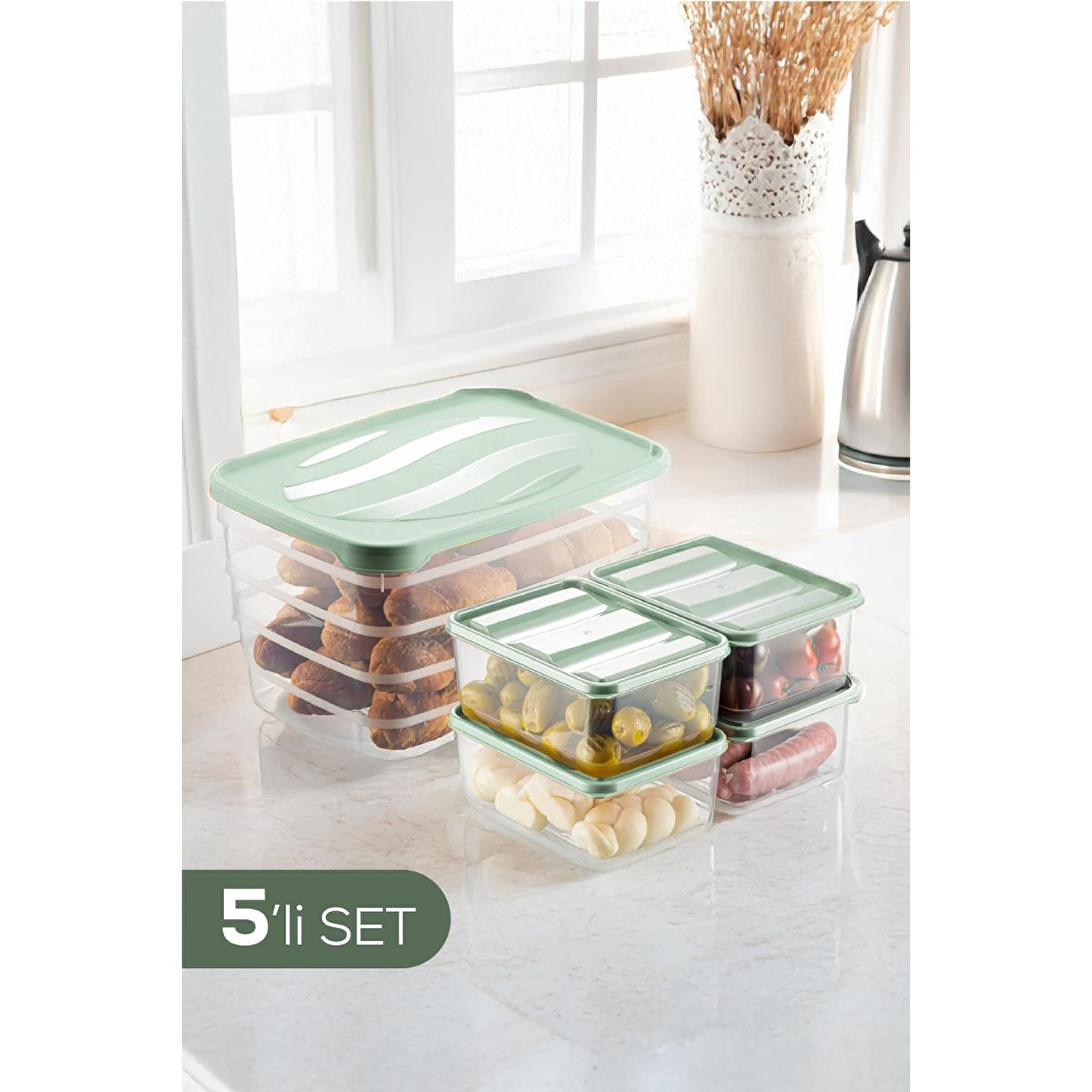 Vienev 5'li Set Dondurucu Ve Mikrodalgaya Uygun Buzdolabı Düzenleyici 1x(5 Litre) 4x(775 Ml) Mint Yeşili