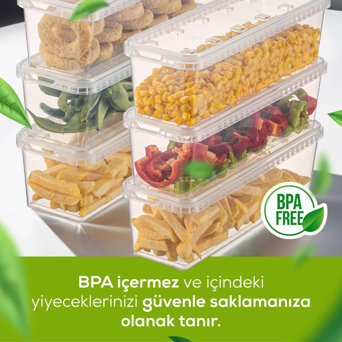 6lı 1,4 Litre Block Buzdolabı ve Derin Dondurucu Sızdırmaz Saklama Kabı Şeffaf; Bu eşsiz buzdolabı düzenleyici ile mutfağınızı mükemmel bir şekilde düzenleyin ve yiyeceklerinizi uzun süre taze tutun.; Dayanıklı ve şık tasarımı ile hem cildinize hem de yiyeceklerinize dost bir ürün.; ; ; Öne Çıkan Özellikleri ; ; Özel tasarım: Antrasit kapak şeffaf gövde renginde modern ve şık görünüm.; ; 1,4 litre kapasite: Geniş iç hacim ile daha fazla saklama alanı.; ; Sızdırmaz yapı: Yiyeceklerinizi güvenli ve taze tutar.; ; Kullanım kolaylığı: Derin dondurucu ve buzdolabı düzenleyici olarak kullanılabilir.; ; Sağlıklı malzeme: BPA içermeyen, gıda ile temas edebilir güvenli plastik.; ; Set olarak satılır: 6 adet saklama kabı içerir.; ; ; Faydaları ; Yiyeceklerinizin tazeliğini ve lezzetini korur.; ; Mutfak dolaplarınızı ve buzdolabınızı düzenli tutar.; ; Birden fazla kullanım alanı sayesinde esneklik sağlar.; ; Uzun ömürlü ve dayanıklı malzemelerden üretilmiştir.; ; Sızdırmaz kapaklar sayesinde yiyecekleriniz güvenle saklanır.; ; ; Teknik Özellikler ; Renk: Şeffaf ; Kapasite: 1,4 litre ; Ürün Ölçüleri: 9x27x8 cm ; Materyal: BPA içermeyen plastik ; Set İçeriği: 6 adet saklama kabı ; Kullanım Alanı: Buzdolabı, derin dondurucu ;