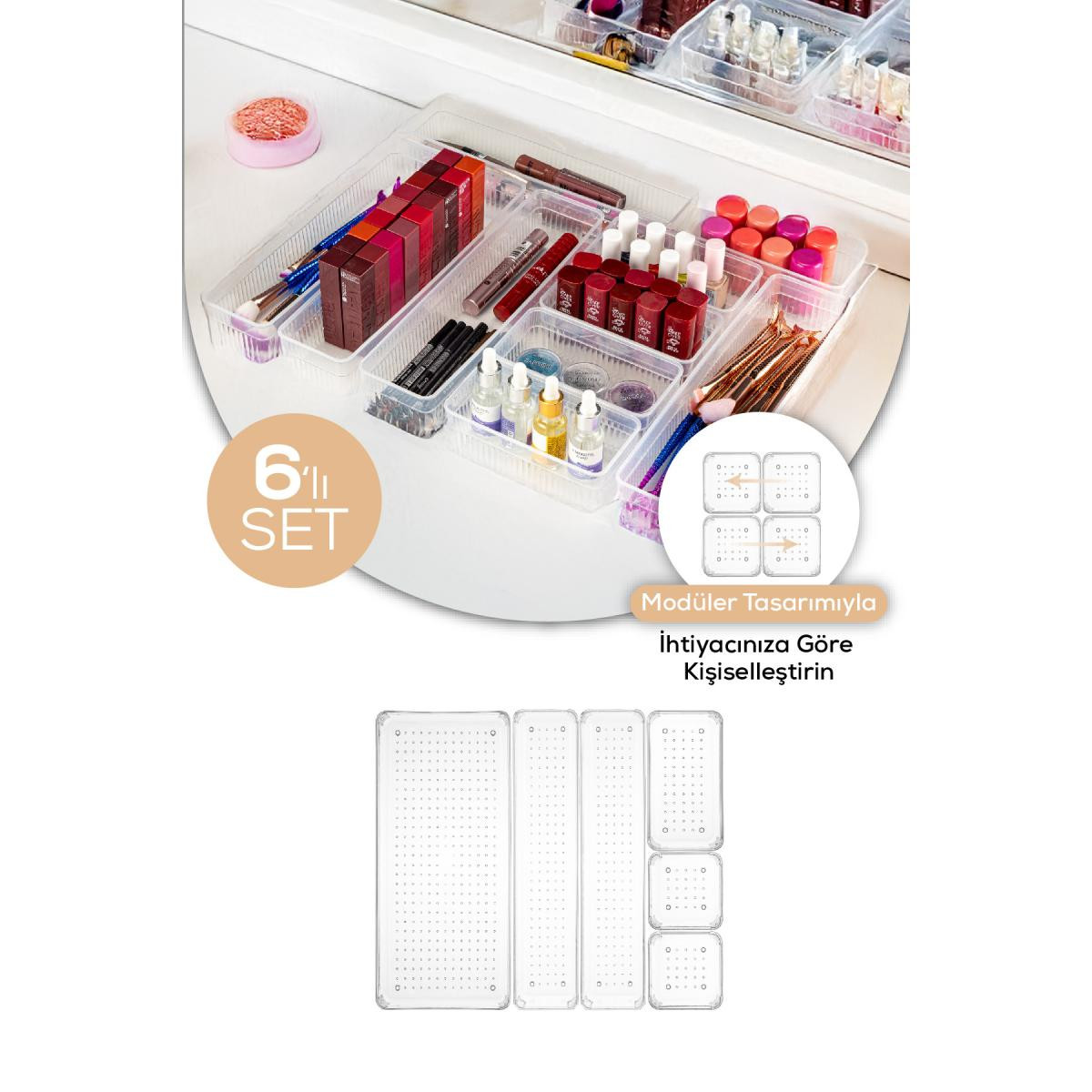 Vienev 6'lı Çekmece Içi - Dolap Içi Banyo Makyaj Takı Düzenleyici Organizer