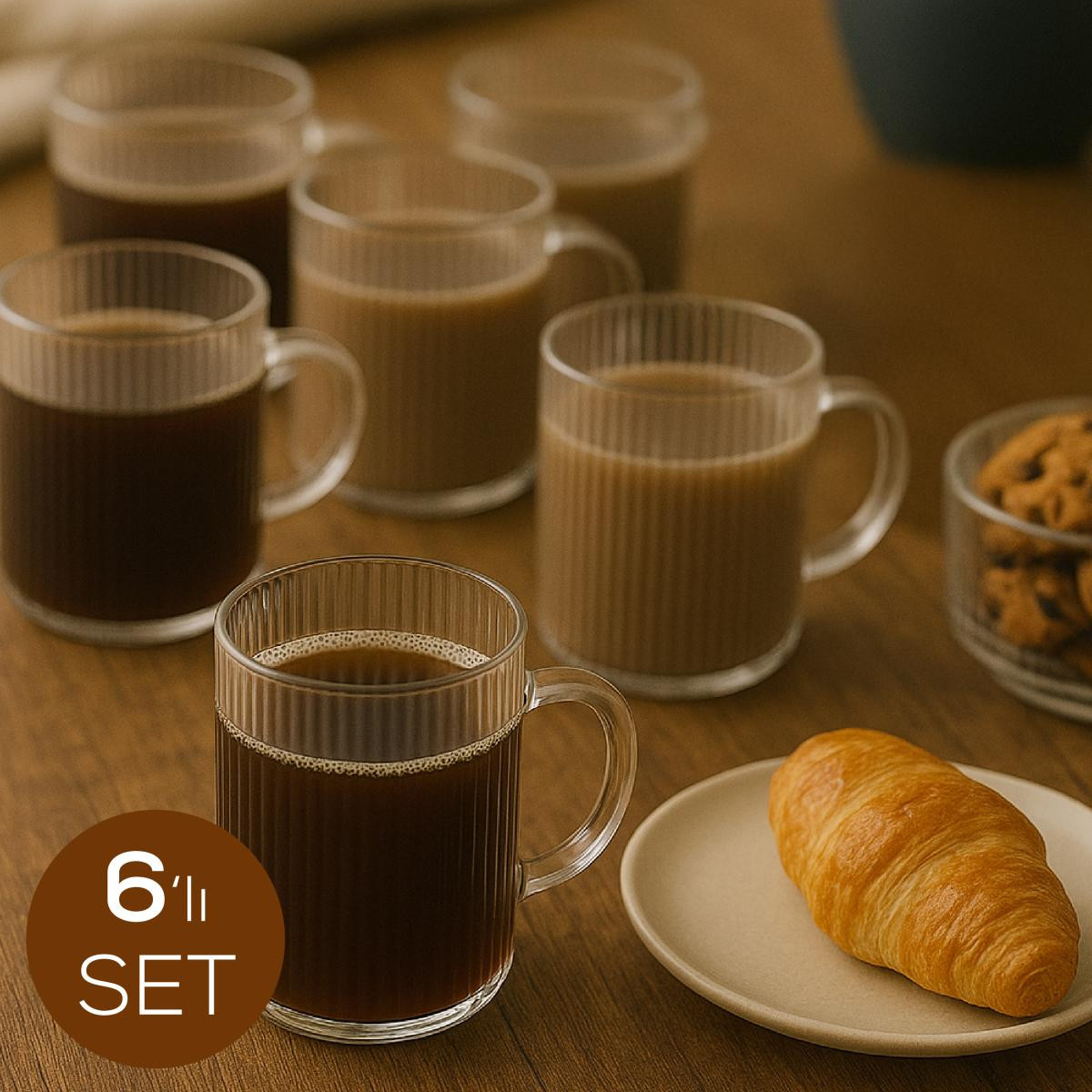 Vienev 6'lı Çizgili Desenli Kulplu Cam Bardak - 200 Ml Cam Çay Bardağı