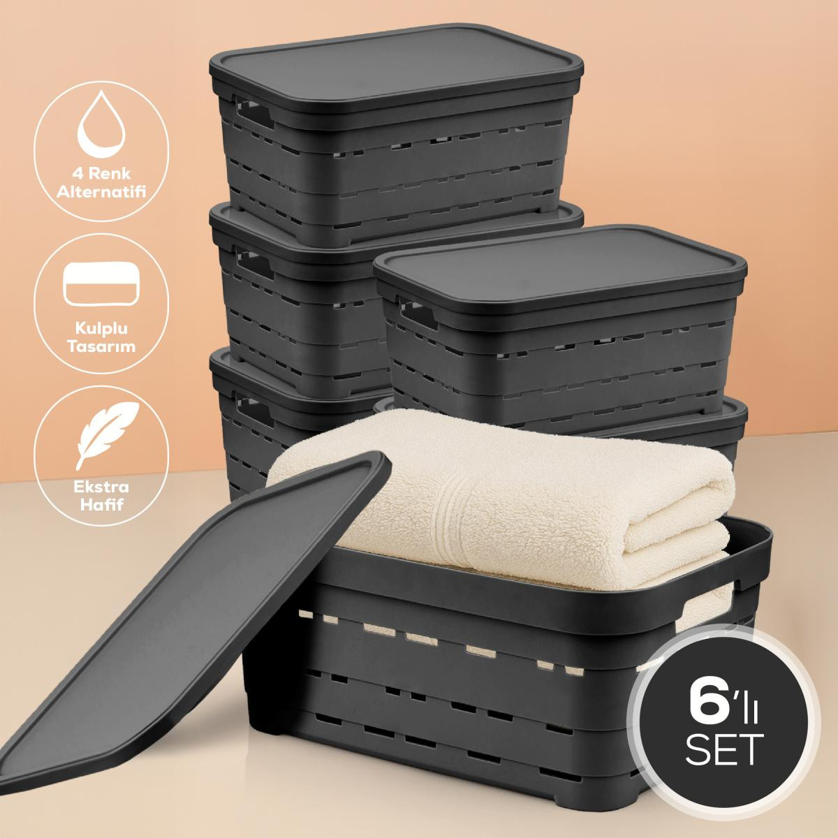 Vienev 6'lı Kapaklı 10,8 Litre Delikli Saklama Kutusu Antrasit