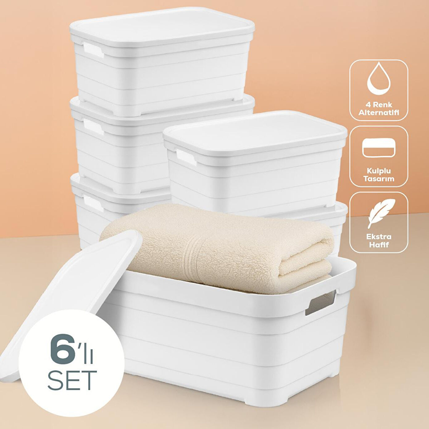 Vienev 6'lı Kapaklı 10,8 Litre Saklama Kutusu Beyaz