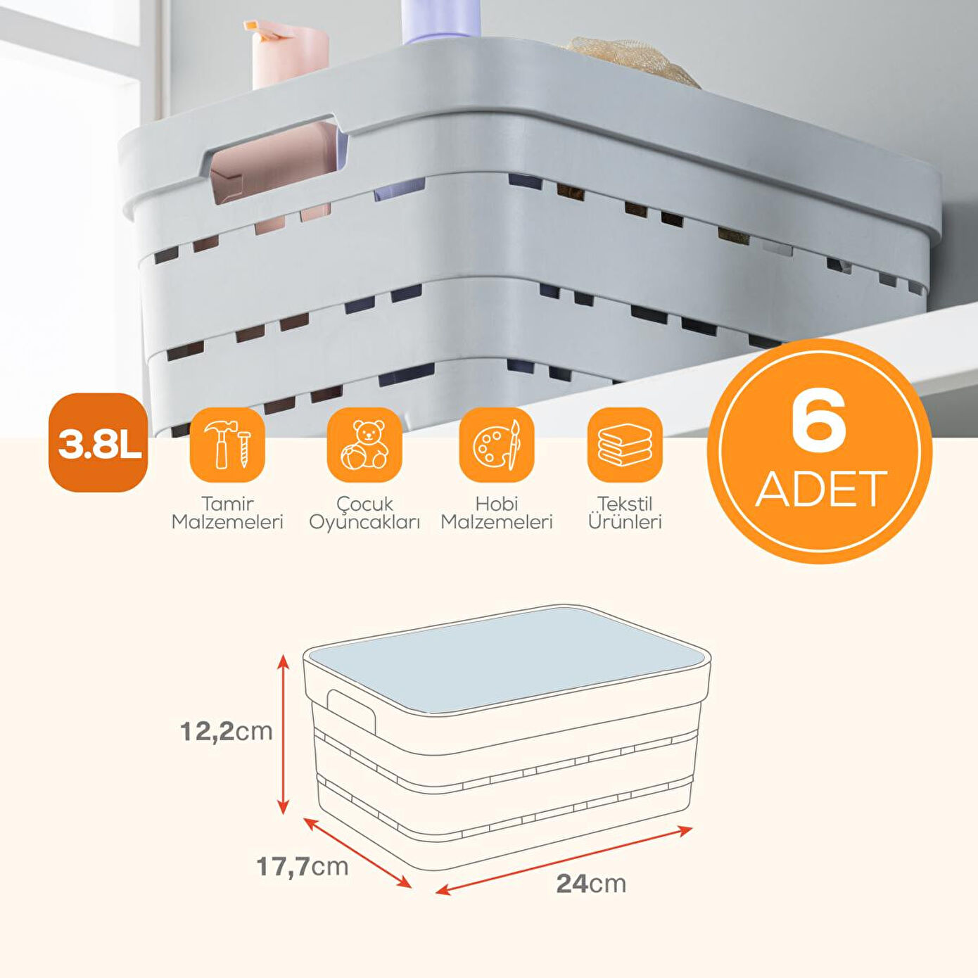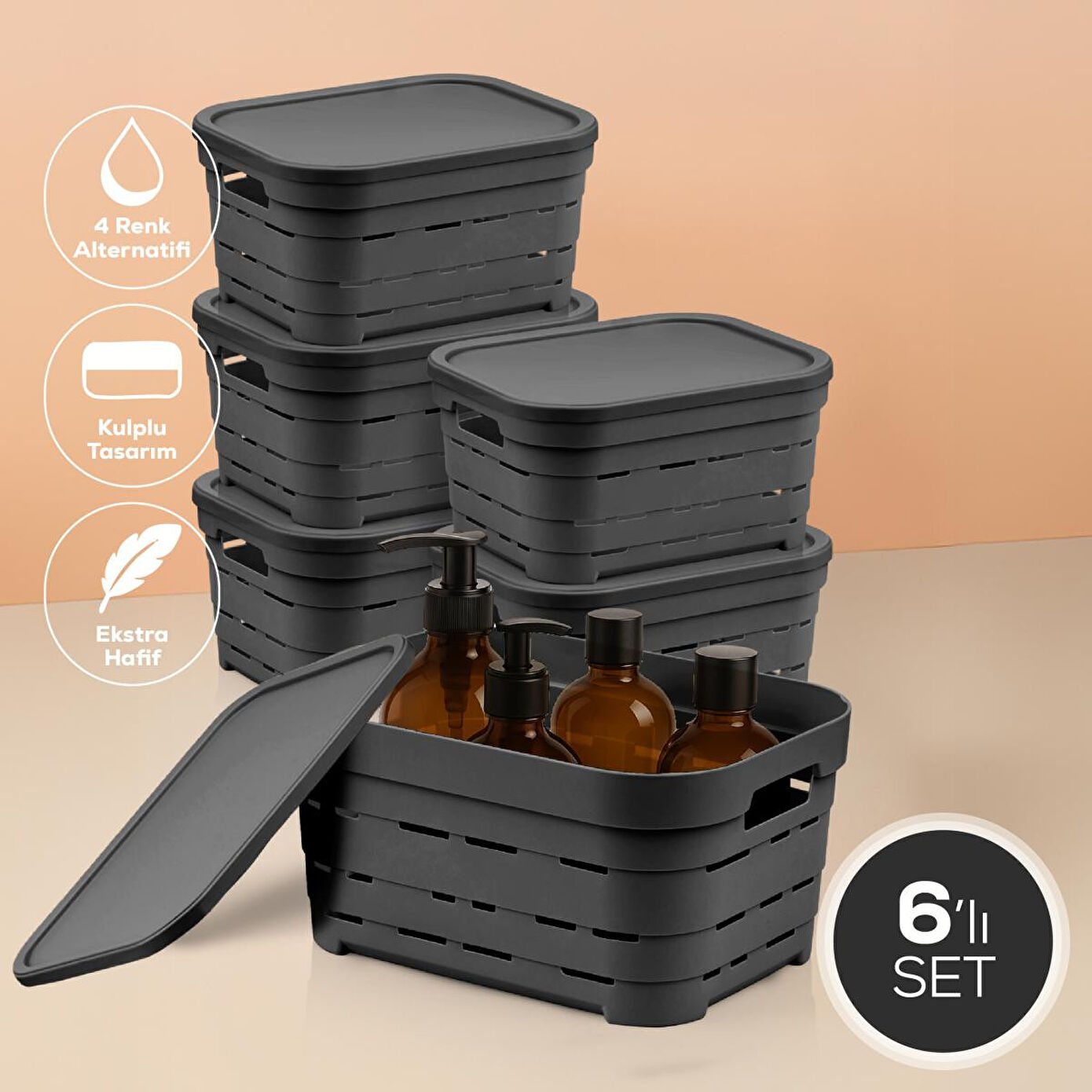Vienev 6'lı Kapaklı 3,8 Litre Delikli Saklama Kutusu Antrasit