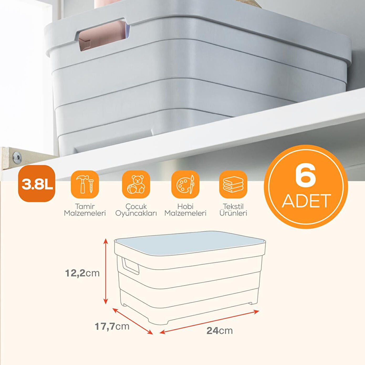 Kompakt ve Fonksiyonel: Hem mutfak dolaplarında hem de banyo, kiler ve çocuk odası gibi alanlarda kullanım için idealdir. Gıdadan kozmetiğe, küçük oyuncaklardan temizlik malzemelerine kadar pek çok ürünü düzenli bir şekilde saklamanıza yardımcı olur. Dayanıklı ve Sağlam Yapı: Yüksek kaliteli, BPA içermeyen plastikten üretilmiştir. Sağlam yapısı sayesinde uzun süreli kullanım sunar. İstiflenebilir Tasarım: Üst üste konulabilir yapısı sayesinde yerden tasarruf sağlar. Dolap içlerini daha verimli kullanmanıza olanak tanır. BPA içermez: Gıda ile temasa uygundur. Taşıma Kolaylığı: Kutunun her iki yanında yer alan ergonomik tutma yerleri ile dolu haldeyken bile rahatça taşınabilir. Ürün Ölçüleri: 17,7x24x12,2 cm Kapasite: 3,8 Litre