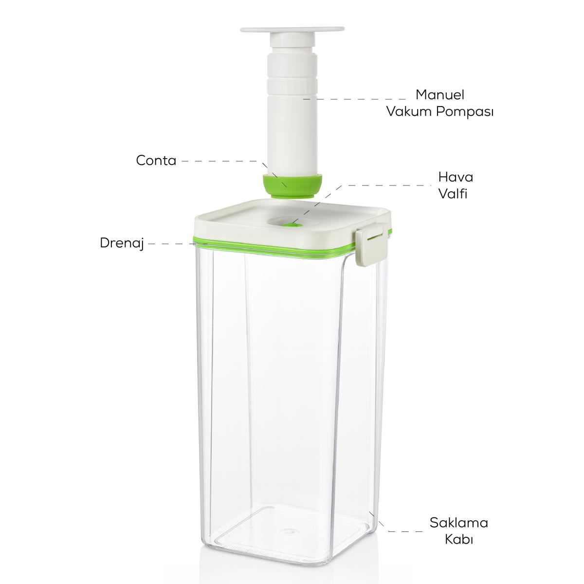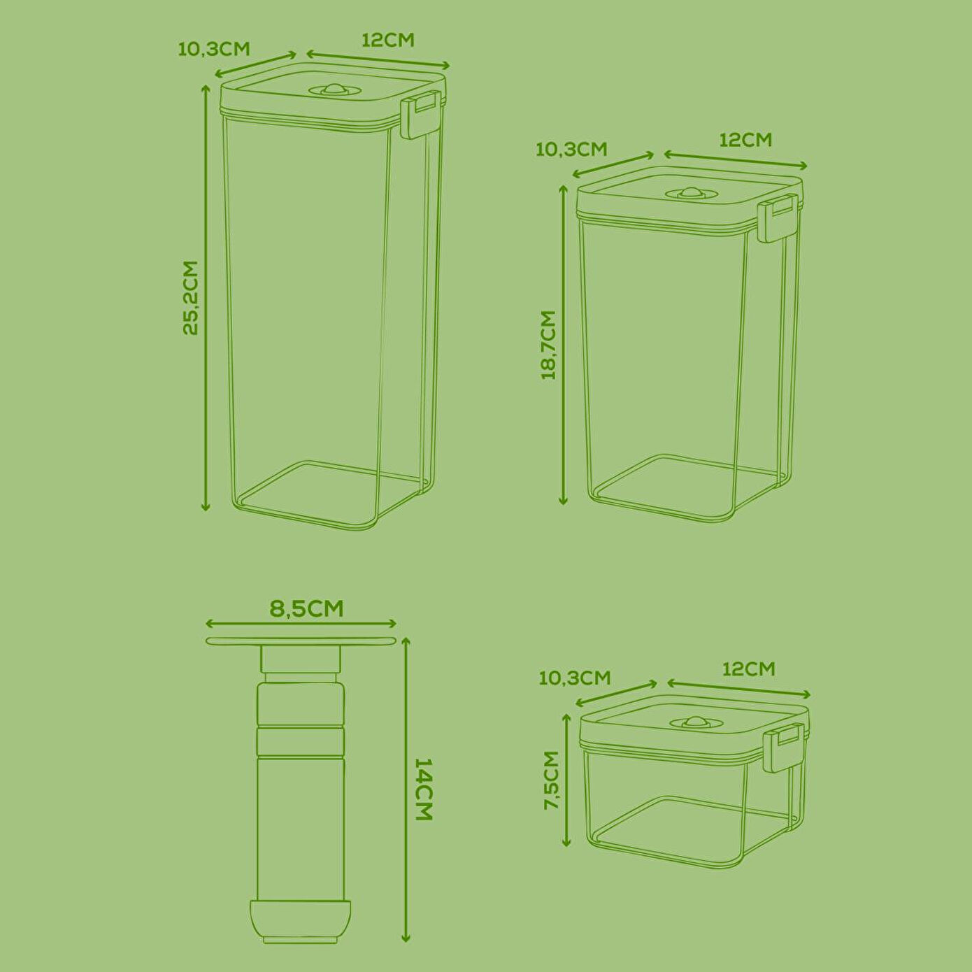 Vienev 7'li Vakumlu Saklama Kabı Seti | 2x(2 Lt-1,3 Lt-0,5 Lt) Kap + Manuel Pompa