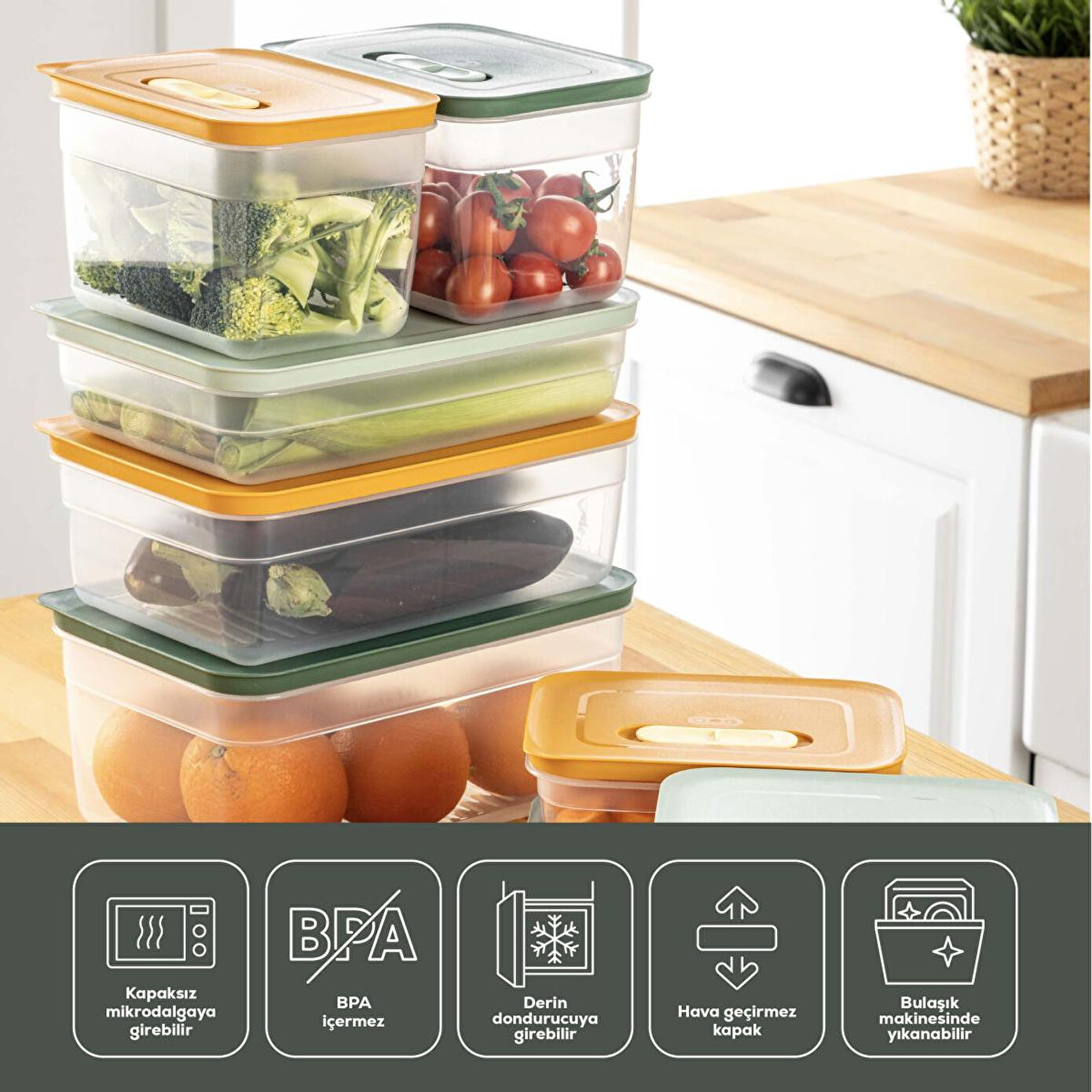 Vienev 7'li Hava Kanallı Ayarlanabilir Sebze Ve Meyve Saklama Kabı 4x(1,15 Lt) 2x(2,35 Lt) 1x(5 lt) yeşil