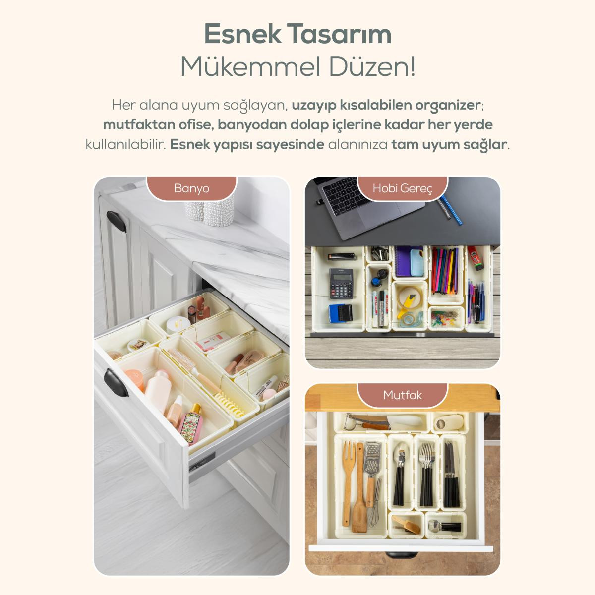 Vienev 8'li Set Ayarlanabilir Çekmece Içi Düzenleyici Kutu – Uzayıp Kısalabilen Organizer Seti (4a2b1c1d)