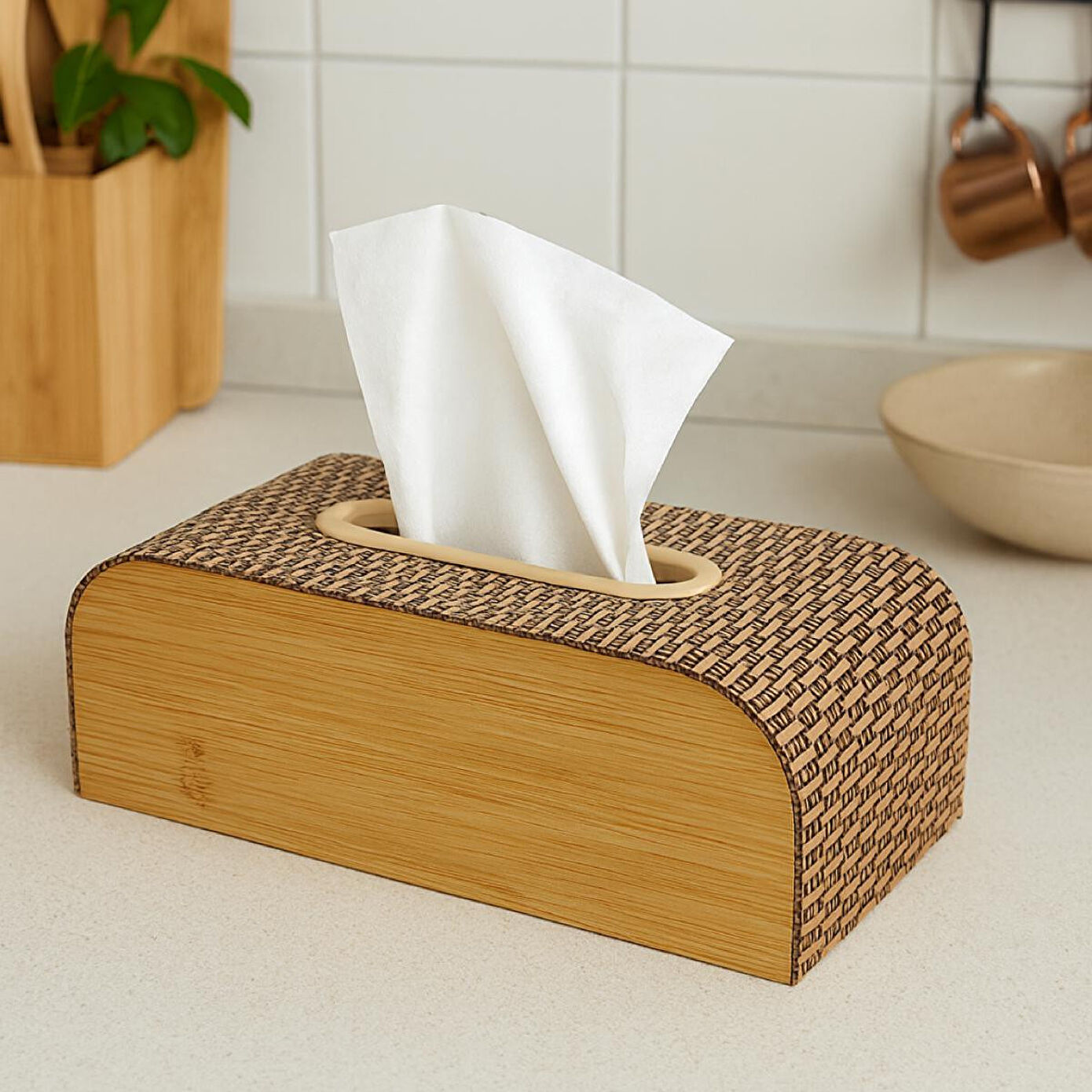 Vienev Ahşap Dikdörtgen Peçetelik – Doğal Ahşap Desenli Dekoratif Mendil Kutusu Ams1119