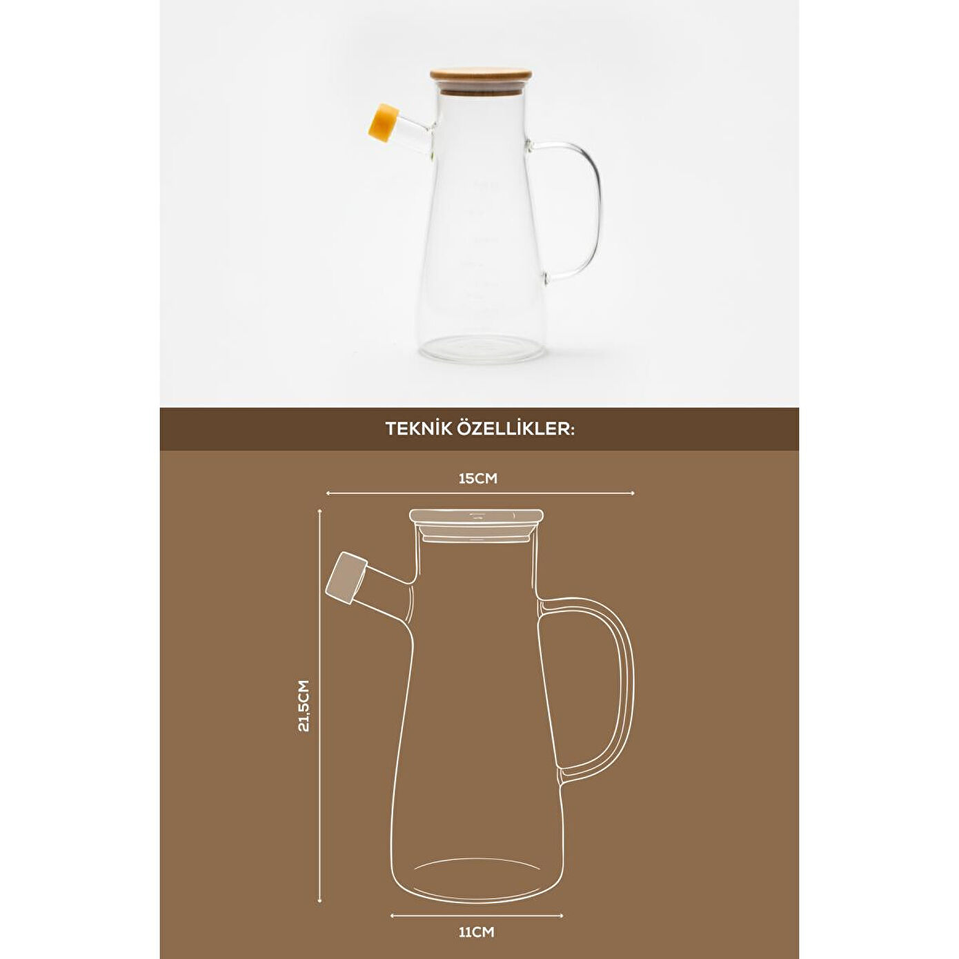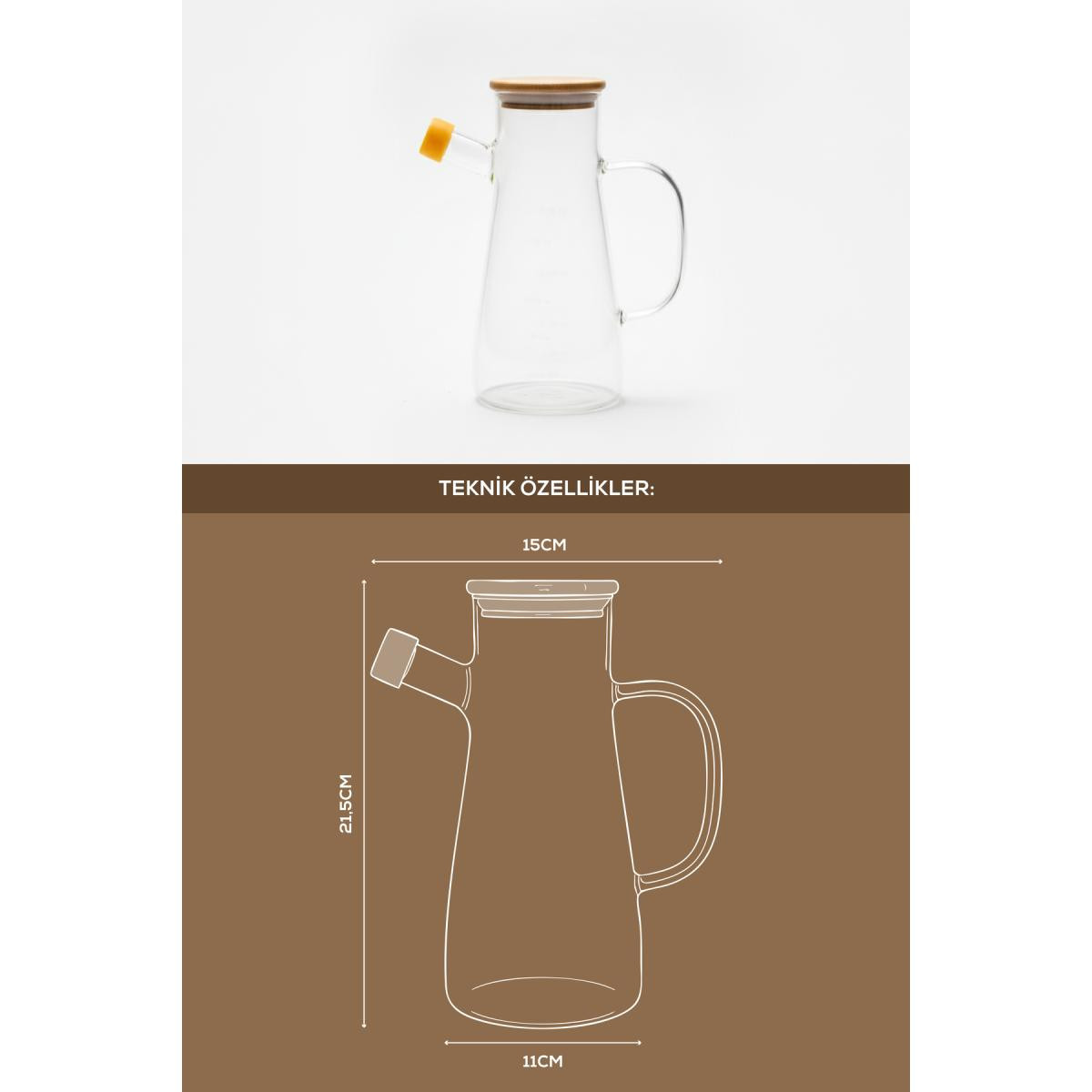 Mutfak tezgahınızda hem şıklığıyla göz dolduracak hem de pratikliğiyle hayatınızı kolaylaştıracak bir yardımcıyla tanışın! 900 ml geniş kapasiteli, ölçekli ve modern tasarımlı cam yağdanlığımız, yemek hazırlama sürecinizi keyifli bir deneyime dönüştürmek için tasarlandı.; Yağ ve sirke gibi sıvıları temiz, kontrollü ve şık bir şekilde kullanmak artık çok kolay.; ; ; Neden Bu Yağdanlığı Seçmelisiniz? ; ; Mutfaktaki dağınık yağ şişelerine veda edin.; Bu zarif yağdanlık, özel başlığı sayesinde tezgahınızın her zaman temiz kalmasını sağlarken, üzerindeki ölçü çizgileri ile tariflerinizde tam kontrol sunar.; ; ; Öne Çıkan Özellikler: ; ; Geniş Kapasite ve Hassas Ölçek: 900 ml'lik büyük hacmi sayesinde sürekli doldurma derdini ortadan kaldırır.; Üzerindeki ml cinsinden ölçü çizgileri, yemek ve salatalarınız için her zaman doğru miktarı kullanmanıza olanak tanır.; ; ; Şık ve Doğal Ahşap Kapak: Hava almasını engelleyen silikon contalı doğal ahşap kapağı, içindeki zeytinyağı, sirke veya sosun tazeliğini ve aromasını uzun süre korur.; Mutfak dekorasyonunuza sıcak ve modern bir dokunuş katar.; ; ; Ergonomik ve Modern Tasarım: Ele oturan konik yapısı ve rahat kavrama sağlayan cam kulpu ile kullanımı son derece kolaydır.; Minimalist ve zarif görünümüyle mutfak tezgahınızın yıldızı olacak.; ; ; Çok Amaçlı Kullanım: Sadece zeytinyağı için değil; ayçiçek yağı, sirke, soya sosu, limon suyu, nar ekşisi gibi farklı sıvı soslar için de ideal bir saklama ve servis ürünüdür.; ; ; Teknik Özellikler: ; ; Ürün Tipi: Yağdanlık / Sirkelik / Sosluk ; Malzeme: Yüksek Kaliteli Cam ve Doğal Ahşap ; Kapasite: 900 ml ; Ürün Ölçüleri: ; 11x15x21,5 cm ;