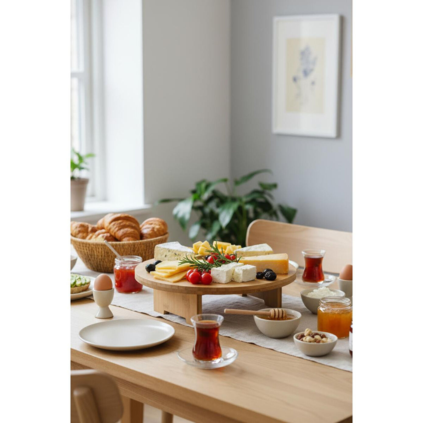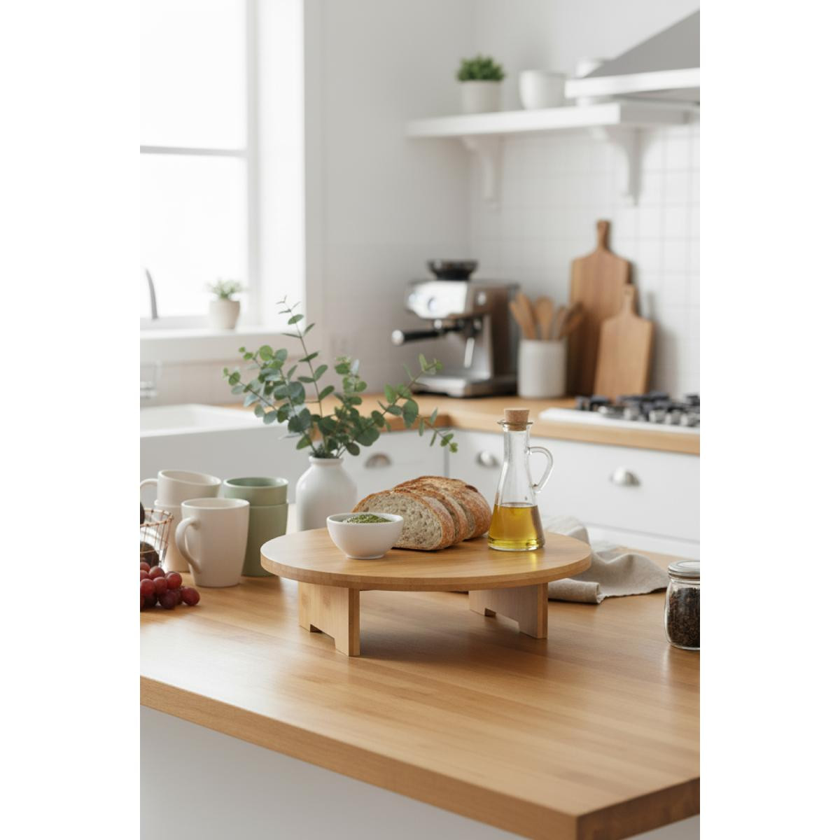 Vienev Ahşap Yuvarlak Sunum Tepsisi Ayaklı