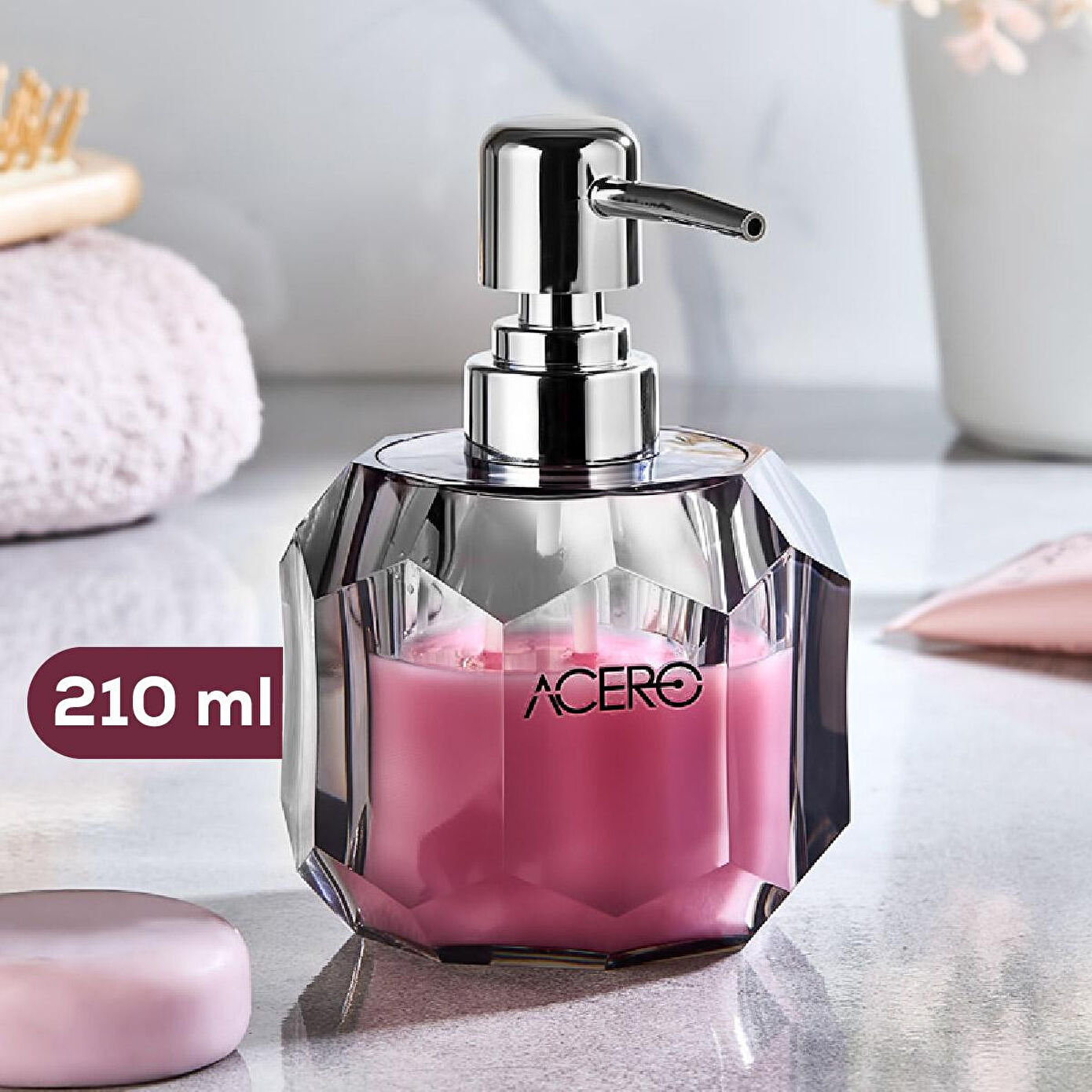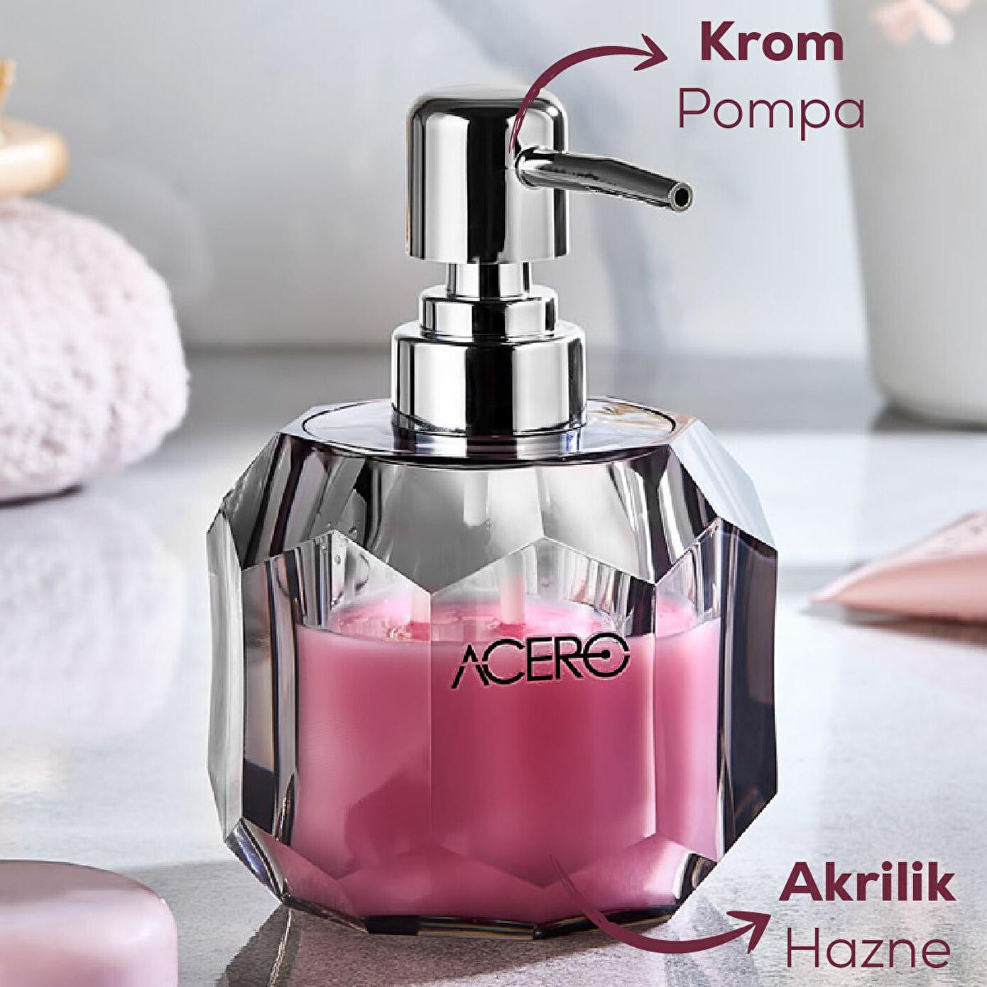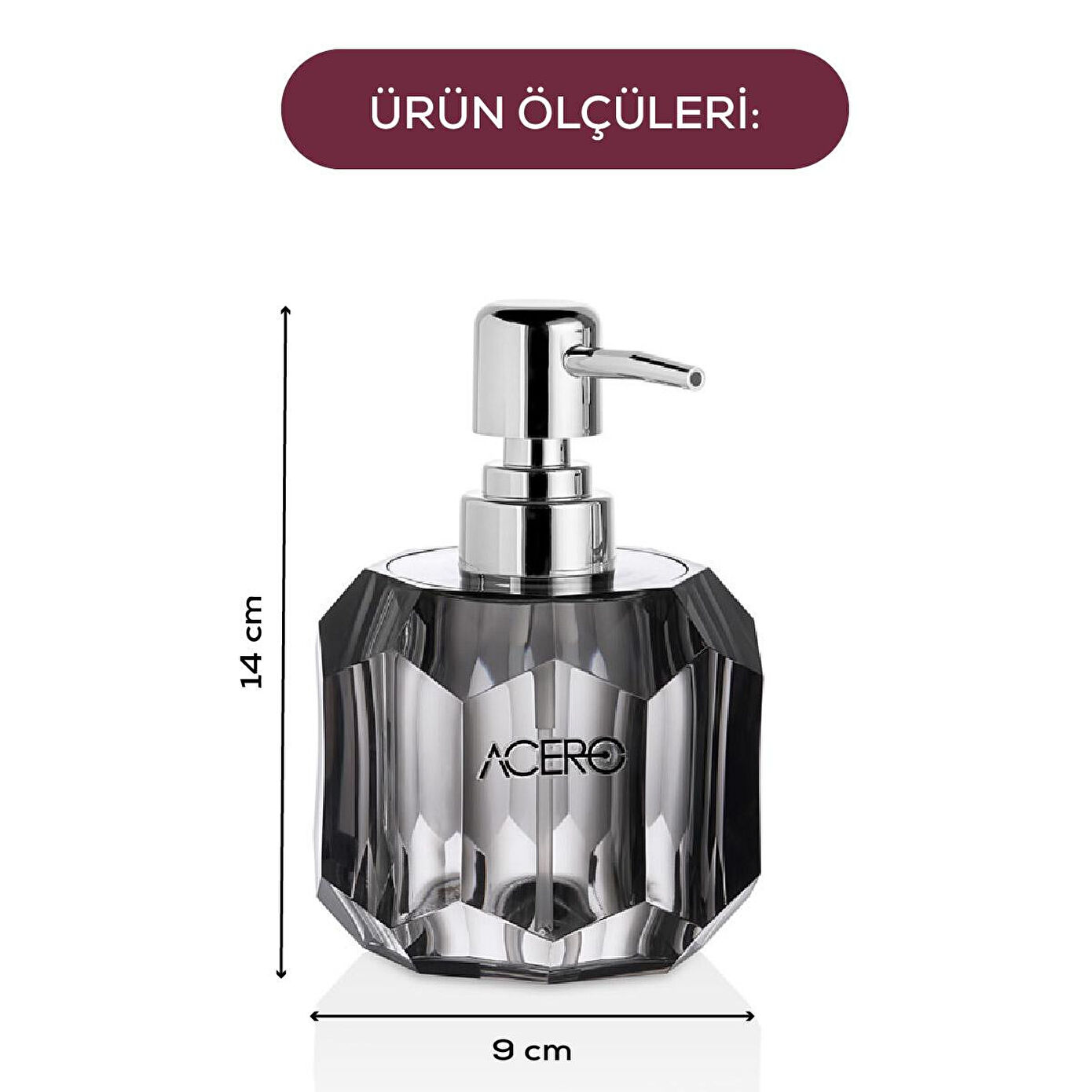 Şıklık ve Zarafet Banyonuza Taşınıyor! Modern tasarımı ve kaliteli yapısıyla dikkat çeken akrilik sıvı sabunluk, banyonuza estetik bir dokunuş katarken hijyen ve pratikliği bir arada sunar. Kristal Görünümlü Akrilik Tasarım Yüksek kaliteli akrilik malzemeden üretilmiştir. Cam görünümü ile şıklığı yansıtırken, dayanıklı yapısı sayesinde uzun ömürlü kullanım sağlar. Kolay Doldurulabilir ve Temizlenebilir Geniş ağız yapısı sayesinde sabun, losyon veya dezenfektan gibi sıvıların kolayca doldurulmasına olanak tanır. Temizliği son derece pratik ve zahmetsizdir. Parlak Krom Pompa Başlığı Paslanmaz ve kolay basım sağlayan metal pompa başlığı ile sıvıyı tek dokunuşla alabilir, her kullanımda konforu hissedebilirsiniz. Dekoratif Kullanım Sadece sabunluk değil; banyolar, mutfak tezgâhları ve lavabolar için zarif bir dekor objesidir. Çiçekler, havlular ve parfümlerle kusursuz bir uyum sağlar. Ürün Boyutları: 8x8x14 cm Hacim: 210 ml