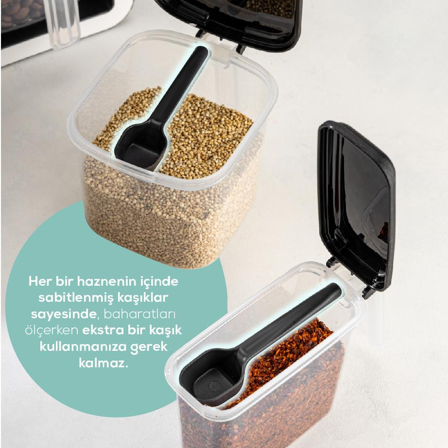 Vienev Beyaz Serigrafi Etiketli 9'lu Standlı Kendinden Yapışkanlı Kaşıklı Baharatlık Seti Antrasit
