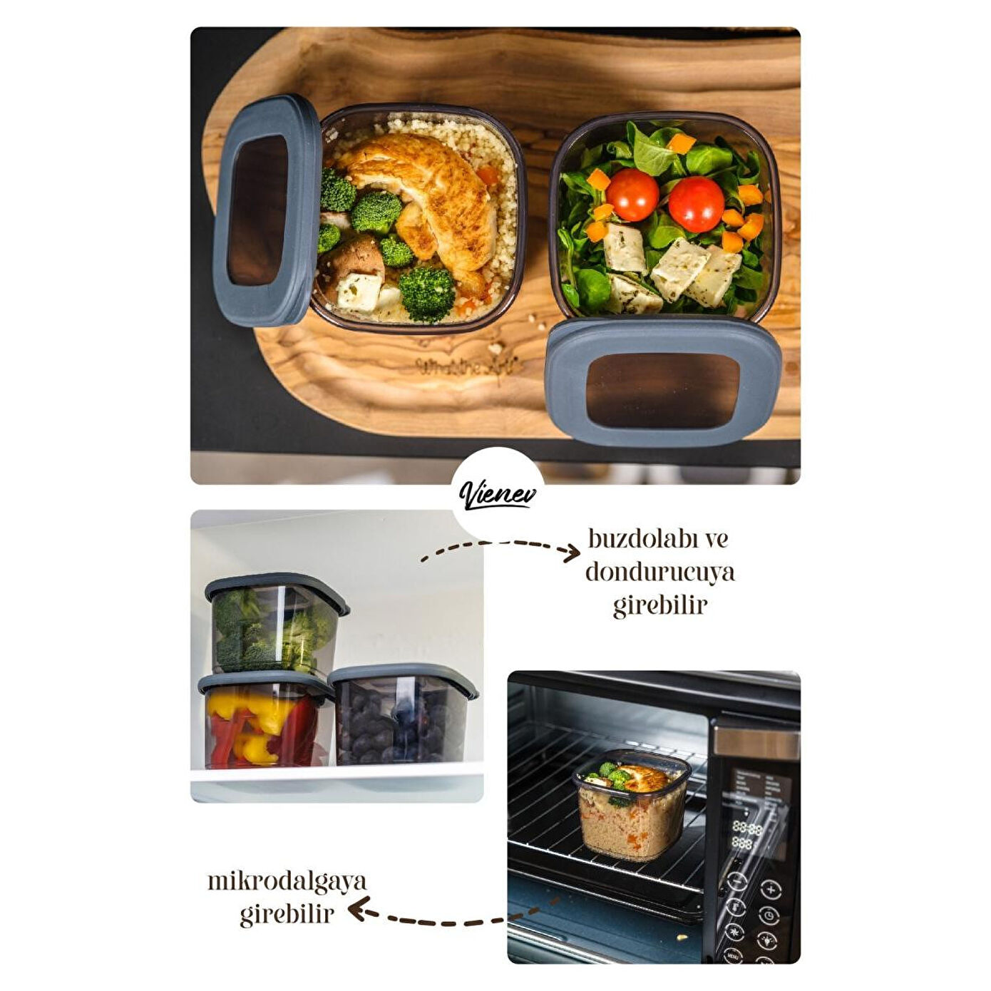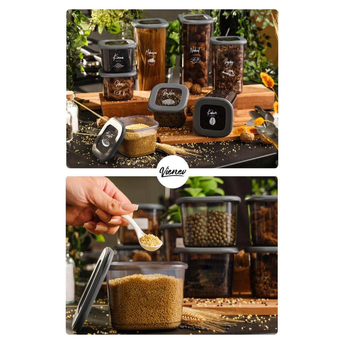 Vienev Beyaz Serigrafi Etiketli Kare Erzak Saklama Kabı 18'li Set 6x(0,55 Li̇tre, 1,2 Li̇tre, 1,75 Li̇tre)