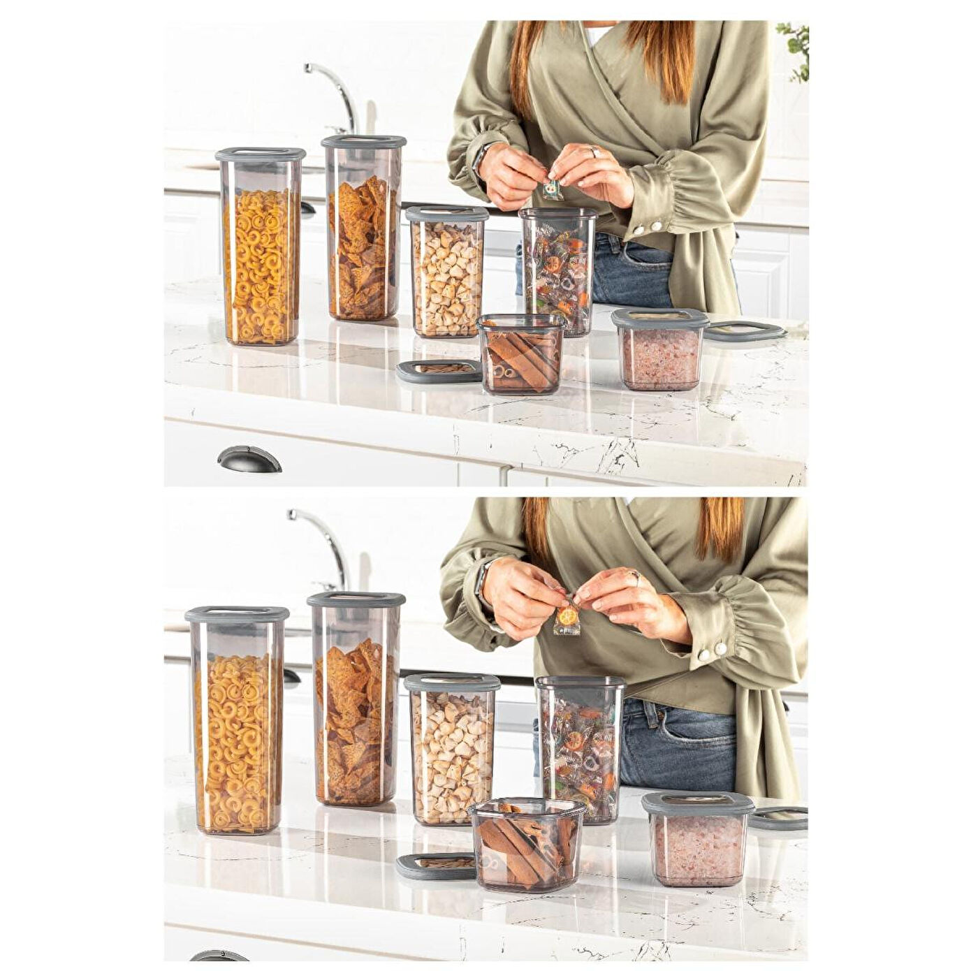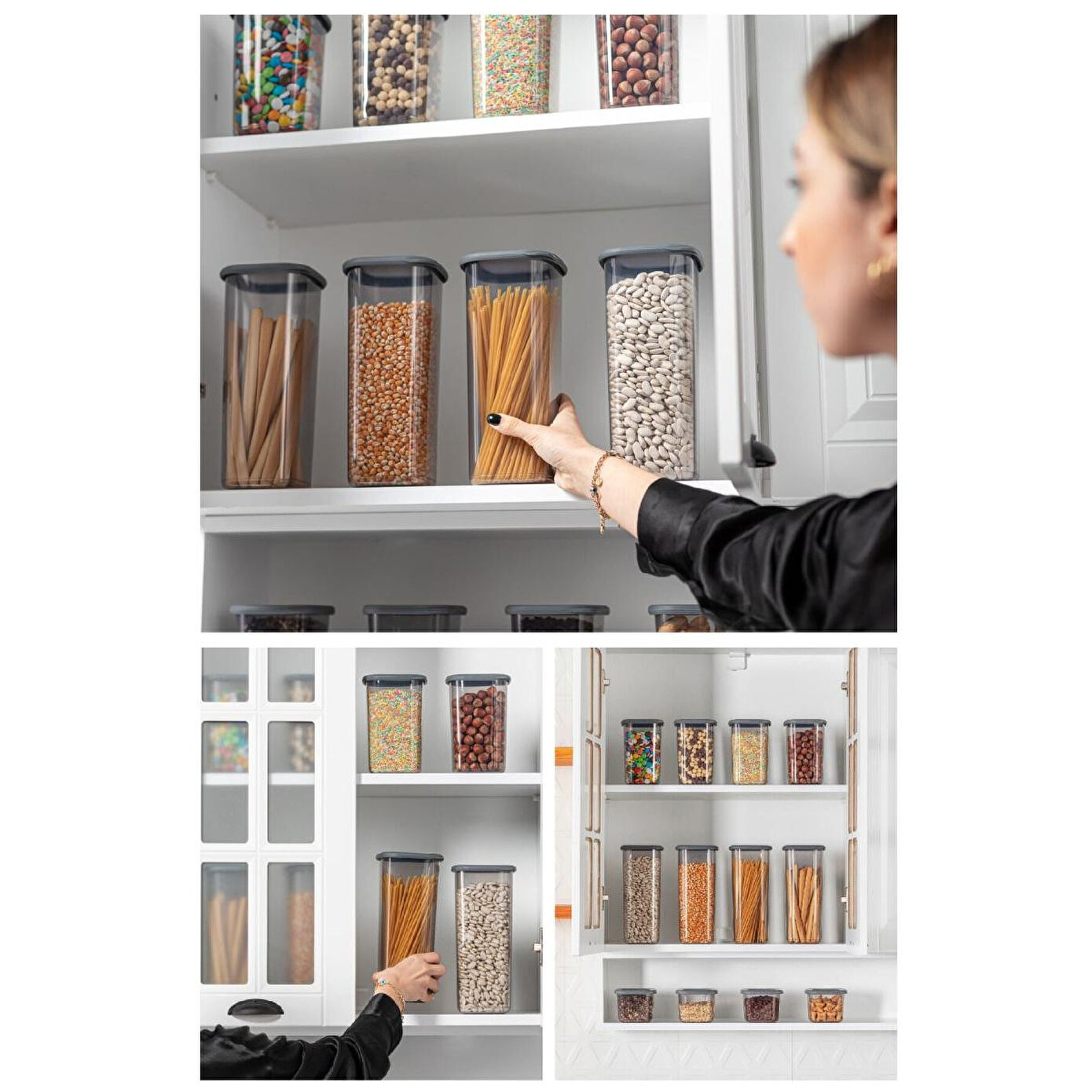 Vienev Etiketli Kare Erzak Saklama Kabı 6'lı Set 2x(0,55 Litre, 1,2 Litre, 1,75 Litre) Antrasit