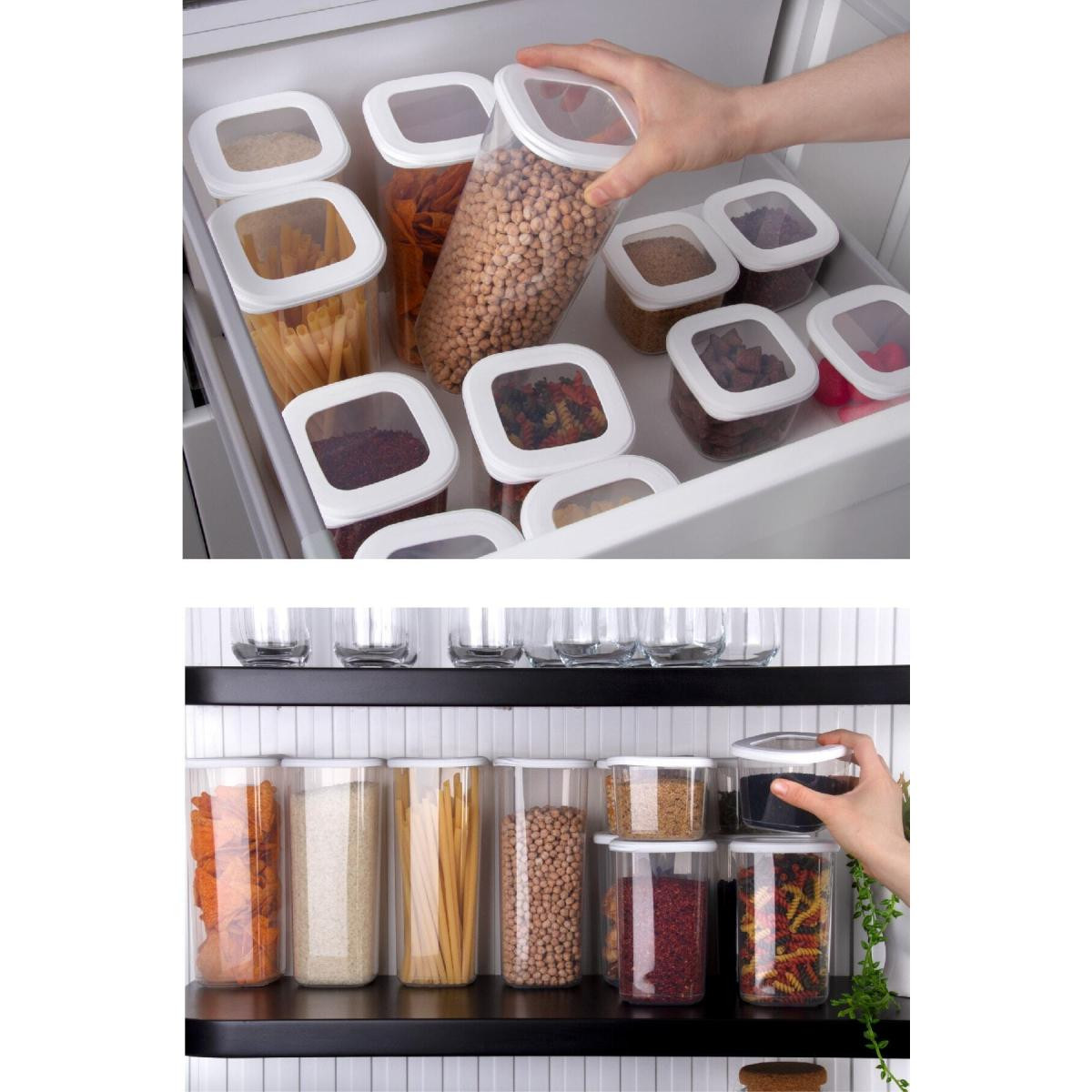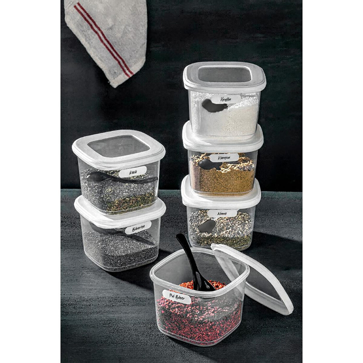 Vienev Etiketli Kaşıklı Kare Erzak Saklama Kabı 6'lı Set Küçük Boy 0,55 Litre Beyaz