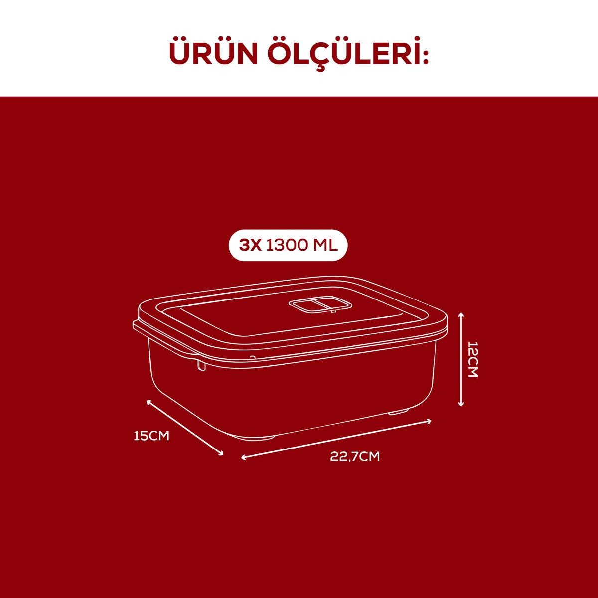 Vienev Kapaklı 3’lü Mikrodalgaya Uygun Dikdörtgen Saklama Kabı Seti - 1300 Ml