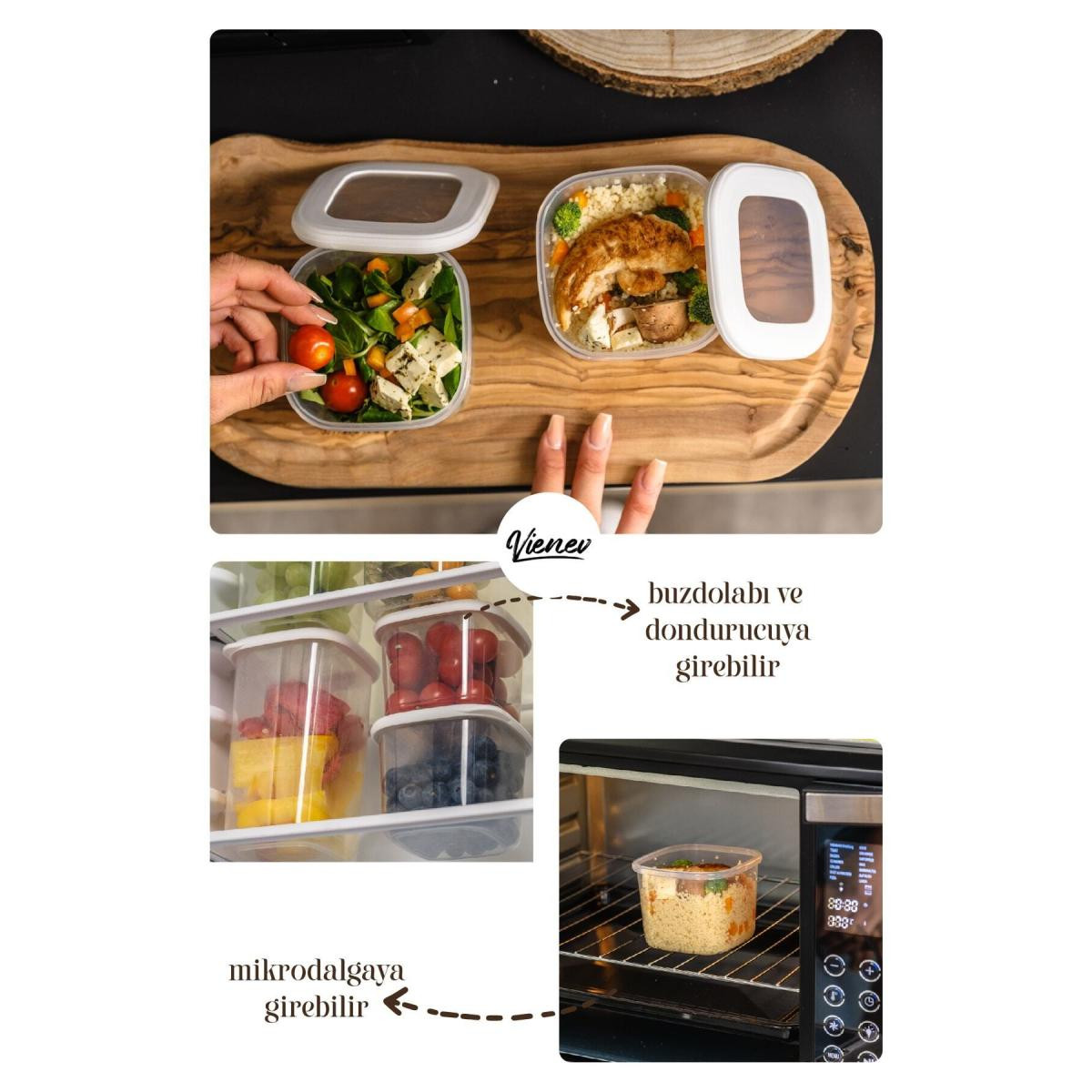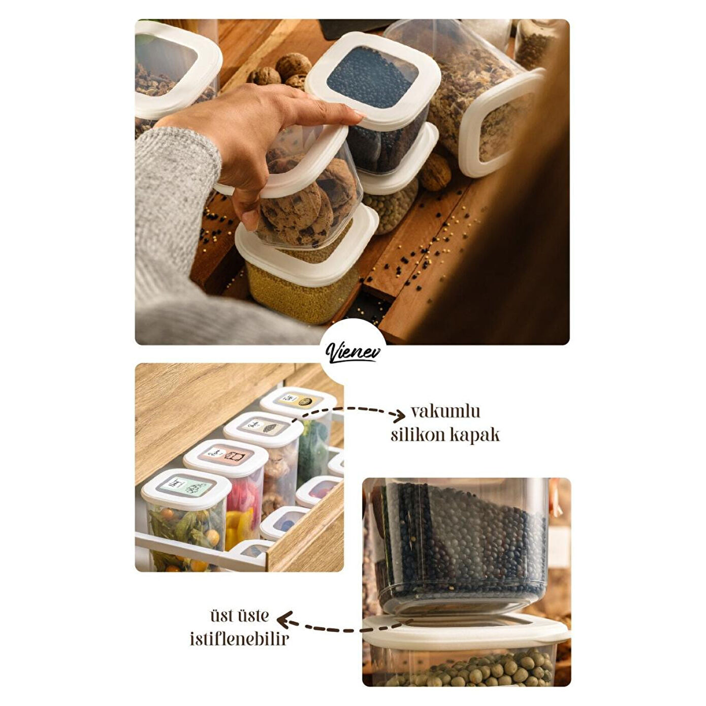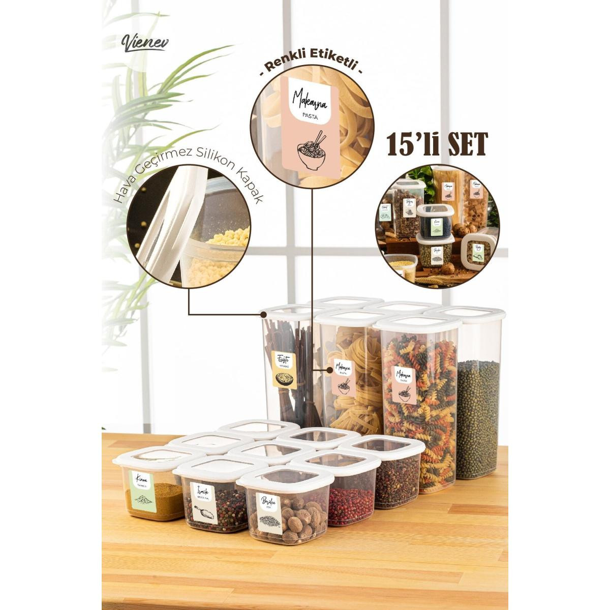 Vienev Renkli Etiketli 15li Foly Kare Erzak Saklama Kabı 9x(0,55 Litre) 6x(1,75 Litre) Beyaz