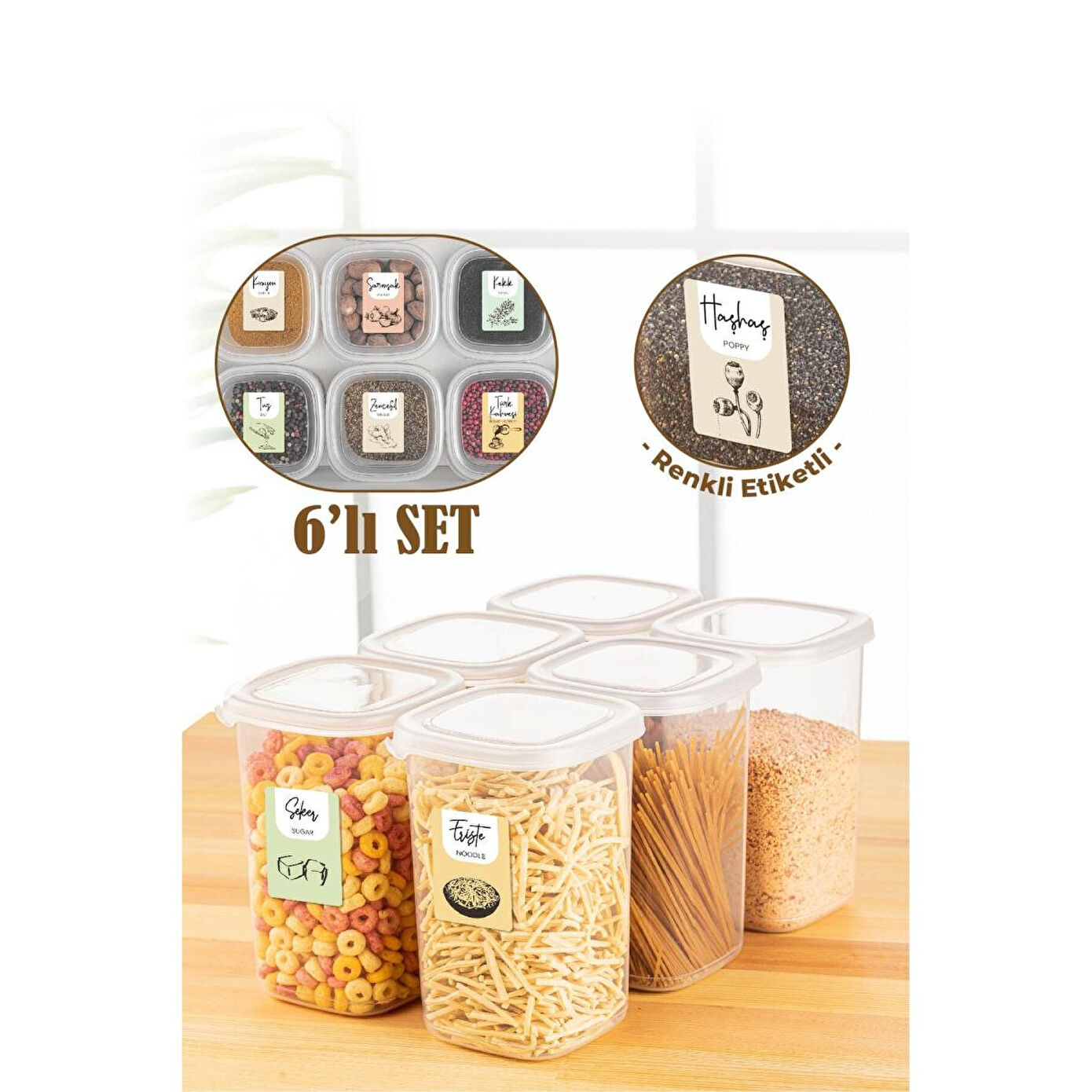 Vienev Renkli Etiketli 6lı 1,2 Litre Peggy Kare Erzak Saklama Kabı Beyaz