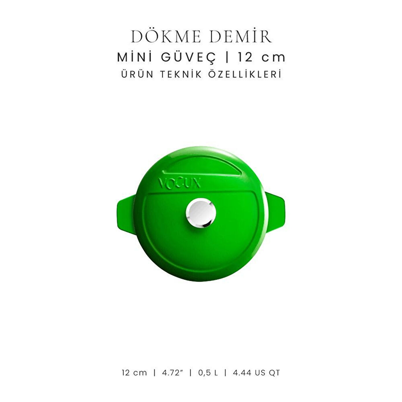 %100 demir döküm olan Voeux tencereniz, ısıyı eşit miktarda yayma özelliği ile yemekleriniz kendi suyuyla pişerken tüm vitamin, mineral ve lif değerlerini korur. Yemekleriniz, Voeux tencereniz ile uzun süre ısısını korur. Voeux tencerenizin içi asit ve korozyon dayanımı yüksek dayanıklı emaye ile kaplıdır. Tencerenizin içini kaplayan emaye, anti bakteriyel ve kanserojen hiç bir katkı maddesi içermediği için sağlığınız için zararlı değildir. Yüzde 80 el yapımı olan Voeux tencereniz, iki kat özel boyası ile canlı renklerini uzun süre korur. Doğal maddenden üretilmesi ve yüksek enerji tasarruf özelliği ile çevre dostudur. Voeux tencereniz ile bir çok farklı türden yemekleri, az yağ kullanımı ile en sağlıklı şekilde pişirebilirsiniz. Döküm tencerenizin fırına girme özelliği ile ekmek ve kek gibi bir çok yemeği tencereniz ile pişirebilirsiniz. Tencereniz bulaşık makinesinde güvenle yıkanabilir. Fakat ürününüzün uzun ömürlü olmasını istiyorsanız elde yıkamanızı öneririz. Voeux tencereniz, ömür boyu limitli garantilidir.* Yükseklik : 5 cm Genişlik : 15 cm Litre: 0,5 lt KG : 2,55 kg Porsiyon: 1 Kişi Emaye Kalınlığı : 200-300 mikron – 3 Kat Emaye * Yanlış kullanım sonucu hasar gören ürünler, derin çizikler, aşırı ısınmadan kaynaklanan yanıklar, düşmeden kaynaklanan kırık parça ve aksesuarlar, temizlik için kullanılan kimyasal elementlerin neden olduğu renk değişiklikleri, tüm fiziksel hasarlar garanti kapsamı dışında tutulacaktır