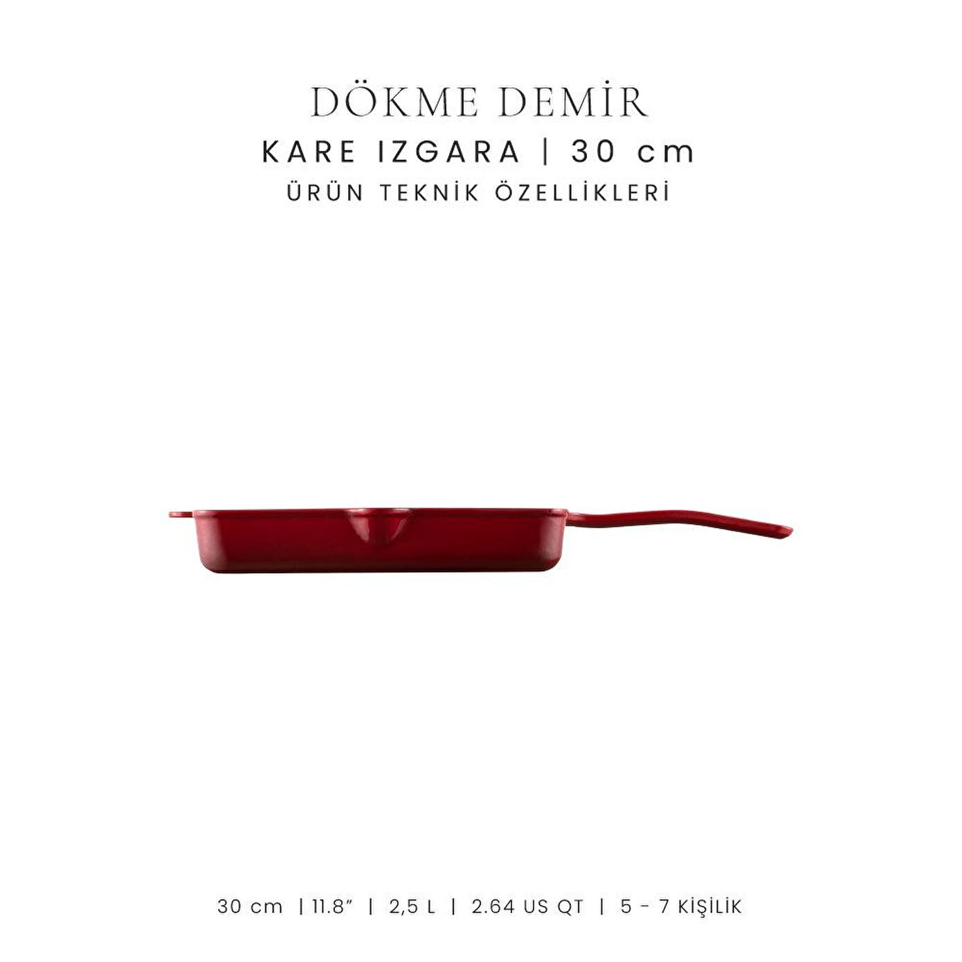 Voeux Kitchenware L'amour Kırmızı Döküm Kare Izgara Tava 30 Cm