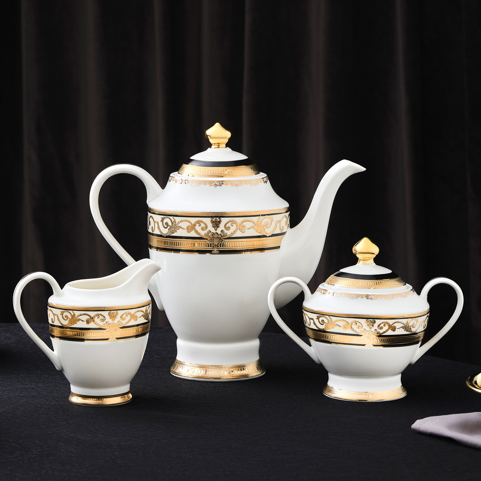 Gelenek ve tecrübeyle hayat bulan porselenler Alman kültürel mirasıyla, zarafet, asalet ve zamansız güzelliği birleştiren, her tasarımında bir hikaye anlatıyor. Barok sanatının en iyi altın vurgularını, kabartma desenlerin ihtişamlı çizgisini, saraylara özgü özel dokunuşunu yansıtıyor. Usta zanaatkarların ellerinden çıkan çarpıcı motifler, günümüzün modern ve asil beyaz porselen dokusuyla birleşerek saray ihtişamını kuşaktan kuşağa aktarıyor.