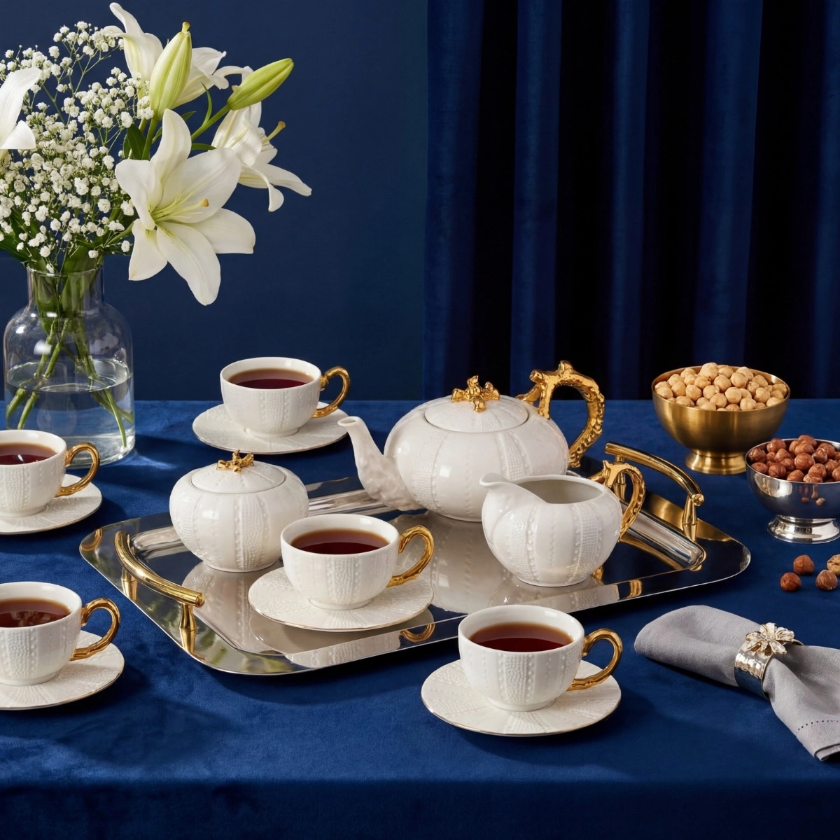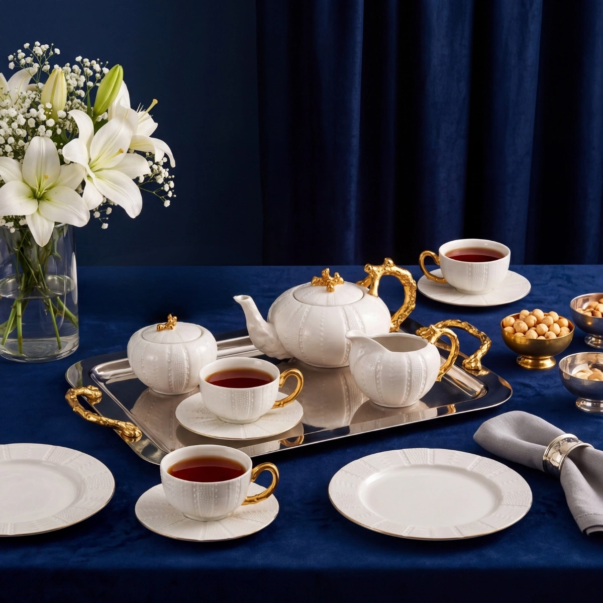 Gelenek ve tecrübeyle hayat bulan porselenler Alman kültürel mirasıyla, zarafet, asalet ve zamansız güzelliği birleştiren, her tasarımında bir hikaye anlatıyor. Barok sanatının en iyi altın vurgularını, kabartma desenlerin ihtişamlı çizgisini, saraylara özgü özel dokunuşunu yansıtıyor. Usta zanaatkarların ellerinden çıkan çarpıcı motifler, günümüzün modern ve asil beyaz porselen dokusuyla birleşerek saray ihtişamını kuşaktan kuşağa aktarıyor.