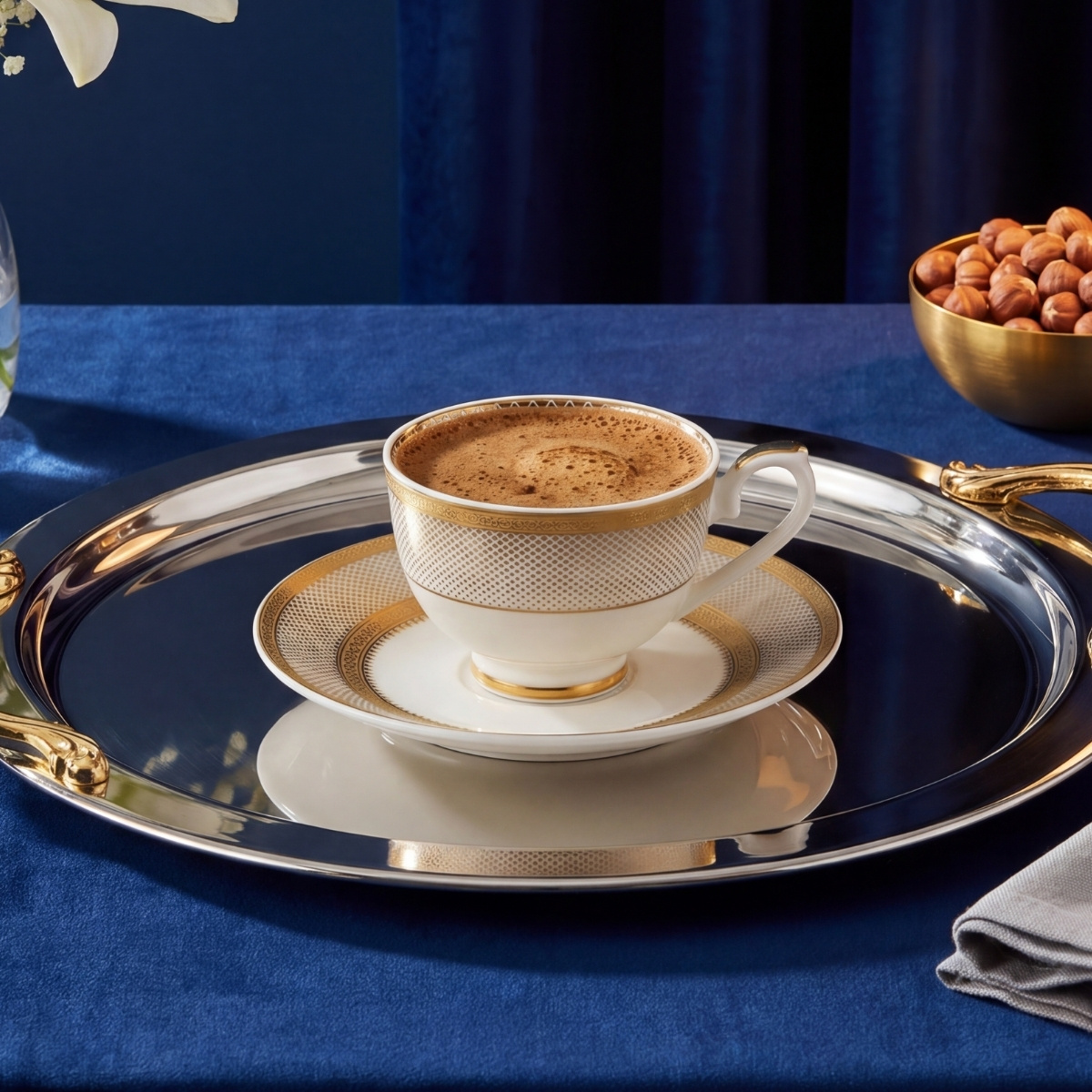 Gelenek ve tecrübeyle hayat bulan porselenler Alman kültürel mirasıyla, zarafet, asalet ve zamansız güzelliği birleştiren, her tasarımında bir hikaye anlatıyor. Barok sanatının en iyi altın vurgularını, kabartma desenlerin ihtişamlı çizgisini, saraylara özgü özel dokunuşunu yansıtıyor. Usta zanaatkarların ellerinden çıkan çarpıcı motifler, günümüzün modern ve asil beyaz porselen dokusuyla birleşerek saray ihtişamını kuşaktan kuşağa aktarıyor.