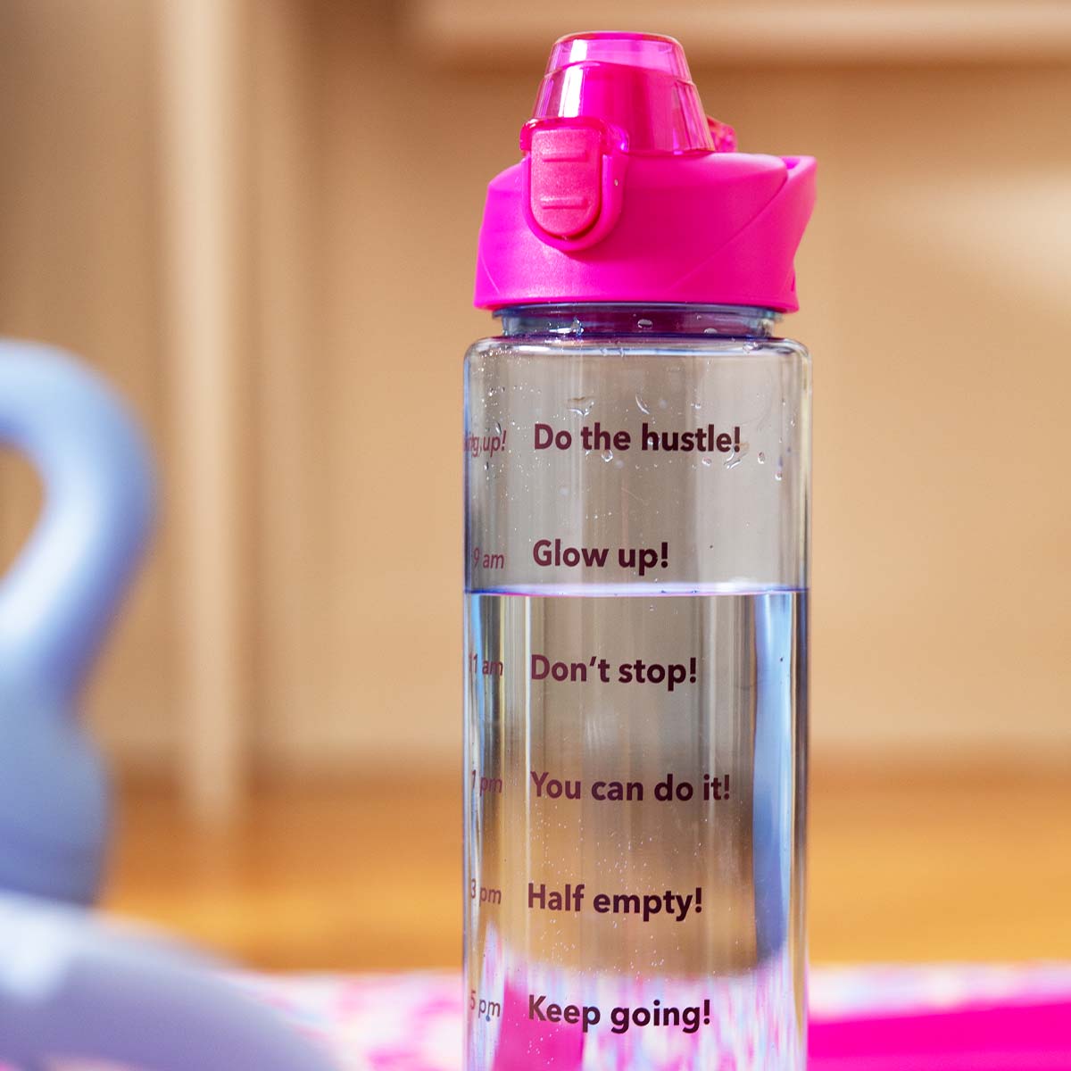 Pembe Mavi Motivasyon Matarası 1 L, enerjik bir tasarımla günlük hidrasyon hedeflerinizi destekler. Eğlenceli metinlerle süslenmiş bu pembe ve mavi su şişesi, gün boyunca ilham almanızı sağlarken sizi susuz kalmamaya teşvik eder. 1 litre kapasitesi sayesinde spor salonu, iş veya günlük aktiviteleriniz için ideal bir seçenektir.