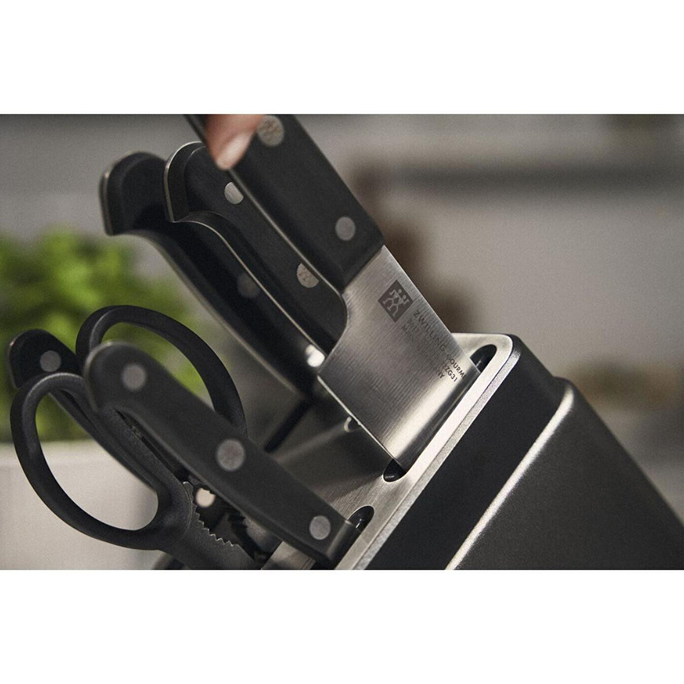 ZWILLING GOURMET ZWILLING GOURMET bıçak serisi ile mutfak mükemmeliyetinin dünyasına dalın - zamansız zarafet ve maksimum hassasiyetin birleşimi. Her bıçak, ZWILLING'in geleneksel zanaatkârlığını yansıtarak, yemek pişirme becerilerinizi bir üst seviyeye taşımak için geliştirilmiştir. Form ve işlev arasındaki güçlü uyumu keşfedin ve ZWILLING GOURMET ile her kesme deneyiminin nasıl ilham verici bir mutfak yolculuğuna dönüştüğünü keşfedin.KLASİK ZAMANSIZ VE ÇOK YÖNLÜ Sağlamlık, buzla sertleştirilmiş bıçak, çekici üç perçinli tasarım ve hafiflik. Bir bıçağı GOURMET yapan unsurlar.Her zaman keskin bıçaklar: KIS (Keep it sharp) teknolojisi, bıçaklarınızın her zaman keskin olmasını sağlayan önemli bir garantidir. Bu, ince ve hassas kesimler yapmanızı sağlar ve bıçaklarınızın ömrünü uzatır.Bıçak bloğundaki seramik parçalar, bıçaklarınızı her çıkardığınızda ve yerleştirdiğinizde düzgün bir kenara bileylemenizi sağlar. Bütün bıçağın bu işlemlerden faydalanmasını sağlamak için, bıçağınızı bileme elemanları boyunca kenar hattına paralel bir şekilde hareket ettirin.
